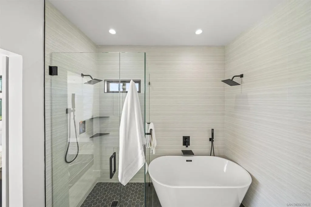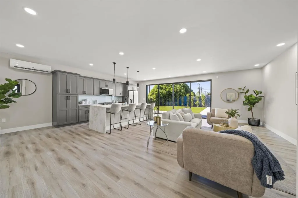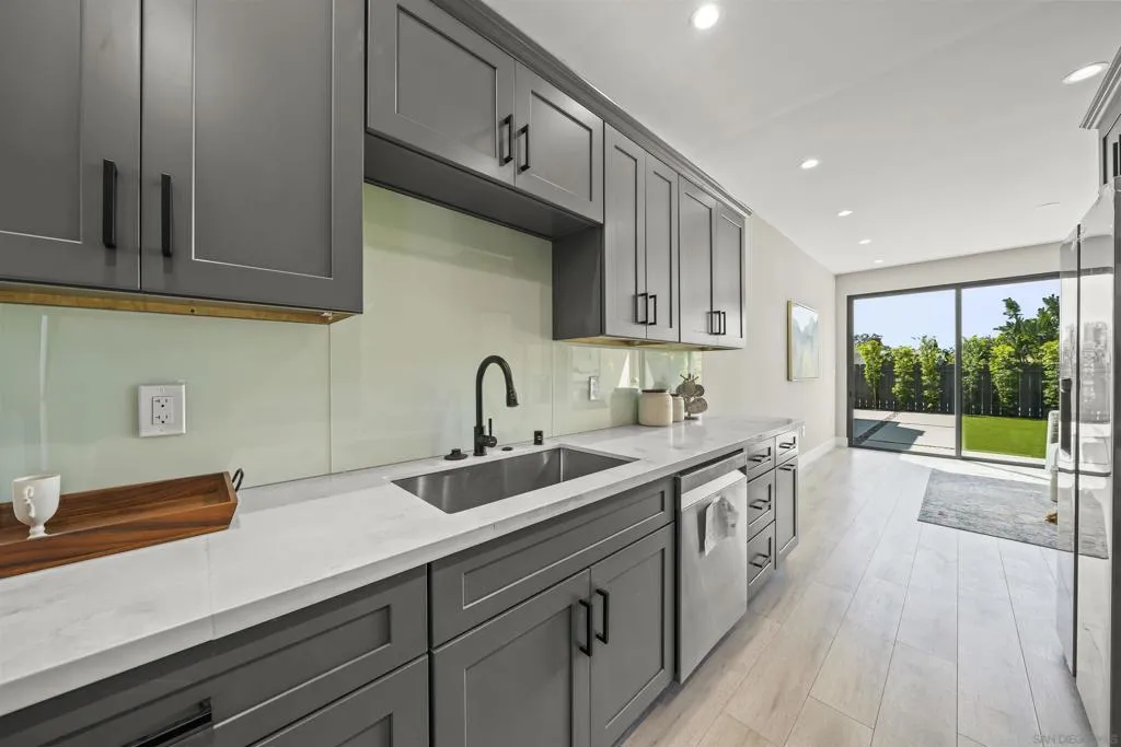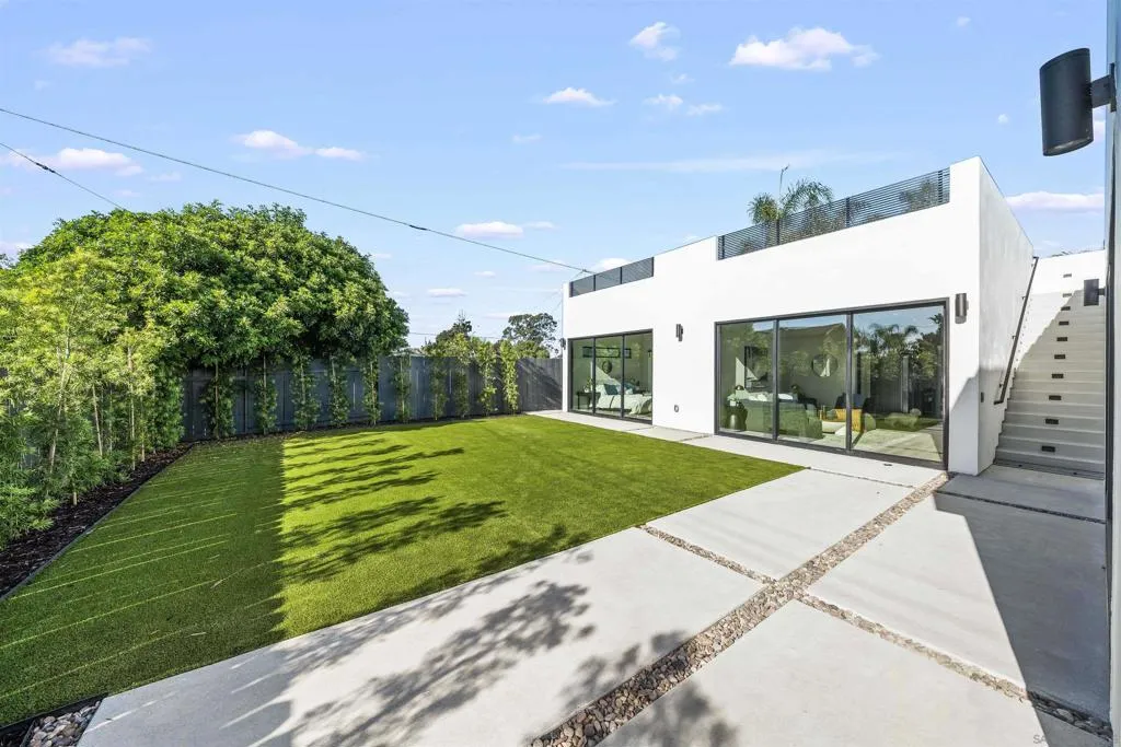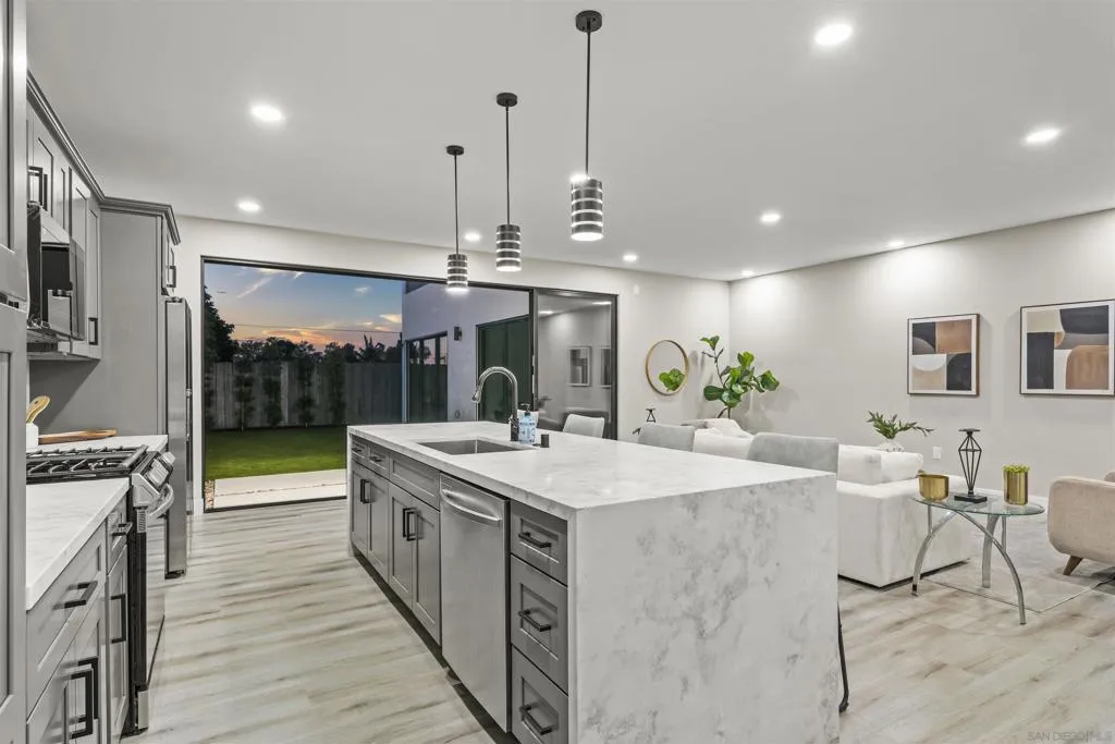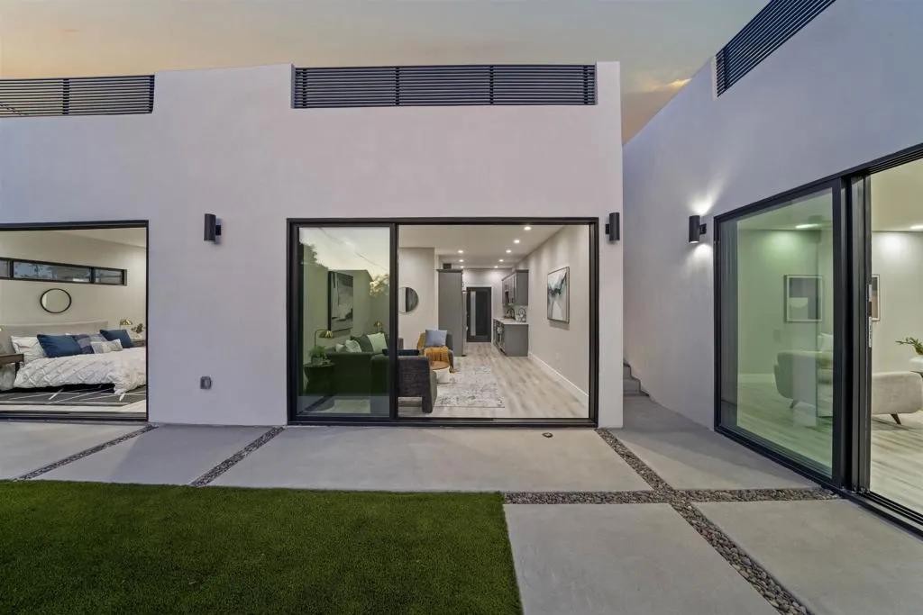 Welcome to this stunning NEW CONSTRUCTION single-story home with attached ADU that has separate entrances. PERMITS WERE OBTAINED. All bedrooms are primary suites and ceiling height is 9 feet all around. All new windows, multi-slide doors, stainless-steel appliances, custom quartz countertops throughout, kitchen island, contemporary front doors, custom garage door, roof top decks with lighting including stairs, new mini splits AC system in each unit, tankless water heater, walk in closet in primary ADU, dual closets in other bedrooms, new landscaping and patio areas, water and scratch resistant vinyl flooring throughout, bathrooms are custom tiled showers, vanities, with all new fixtures. Both units have open floorplan which flows into the living area, kitchen, and patio areas upon entry. New electrical, sewage, and plumbing. The roofs were done with westcoat water proofing and TPO both include 20-year warranty. Both units were framed in with the option to build up at a later time; the existing property was taken down to 3 walls. Separate SDG&E meters.