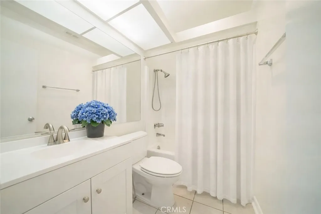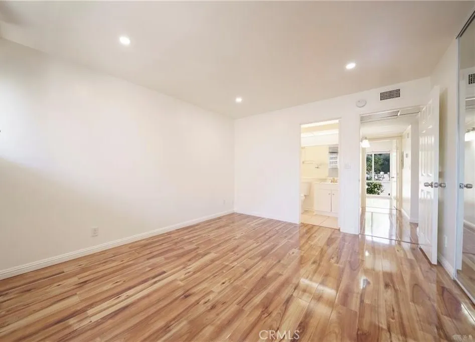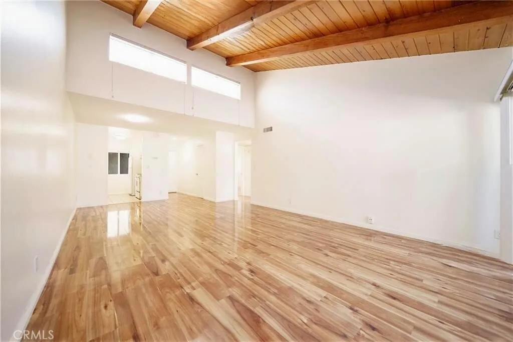 Welcome to 20134 Leadwell a thoughtfully renovated residence that blends warmth with modern simplicity. The expansive living room is framed by vaulted ceilings and illuminated by an abundance of natural light, creating an inviting yet refined atmosphere. New flooring extends seamlessly throughout the open-concept layout, delivering a cohesive and contemporary aesthetic. A large sliding glass door reveals a private balcony, offering a tranquil outdoor area ideal for both relaxation and quiet enjoyment. The primary suite is generously proportioned and appointed with wall-to-wall mirrored closet doors, providing substantial storage while enhancing the sense of space. The secondary bedroom is also well-sized and adjacent to a full bathroom. Set within a secure, gated community, residents enjoy a curated collection of amenities including a pool, three spa areas, lushly maintained grounds, a spacious community laundry facility, 24-hour security, and assigned tandem parking. Ideally situated directly across from a park and moments from local shops, dining, and everyday conveniences, this offering presents a balanced blend of privacy, accessibility, and elevated living.