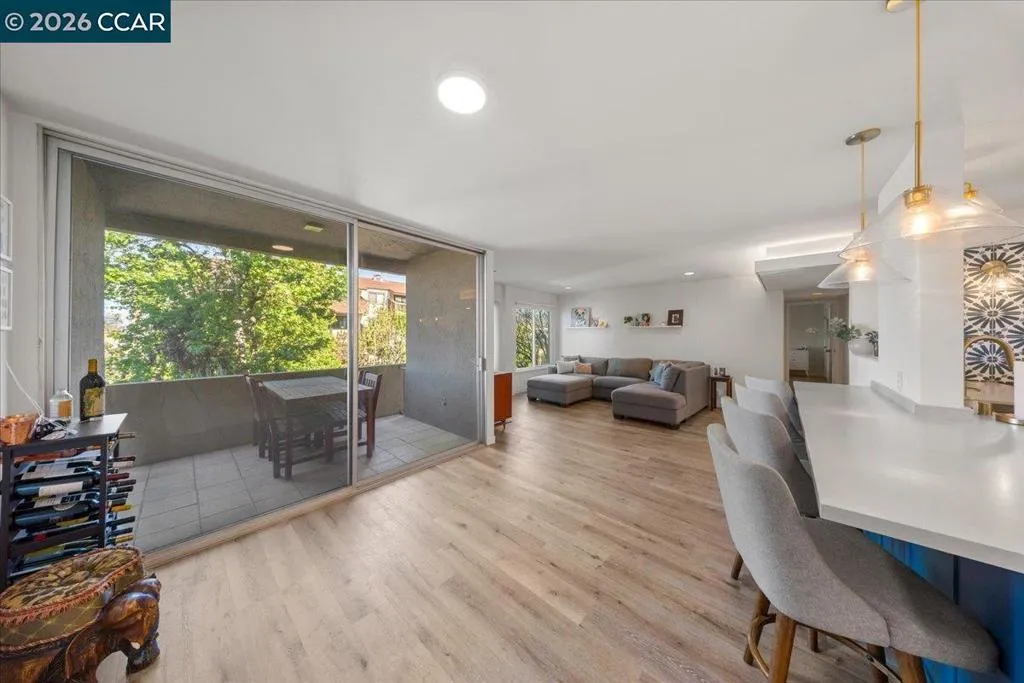 Beautifully updated 2-bedroom, 2-bathroom end-unit condo (1,119 sq ft). This bright, move-in-ready home floods with natural light thanks to its premium end-unit location and extra windows, plus a private balcony offering peaceful views of trees and the skyline for relaxing evenings. Both bedrooms are spacious, with the primary featuring a generous walk-in closet. The home boasts a spacious open floor plan seamlessly incorporating the fully remodeled kitchen with bar seating for informal meals, an inviting family room, and a dedicated area for a dining table for more formal occasions. Pride of ownership shines through with recent upgrades: luxury vinyl plank flooring and new high-efficiency heater (2020), stunning new dual-sink vanity in the primary bath with updated plumbing (2022), and a complete kitchen remodel (March 2025) featuring all-new stainless appliances, upgraded exhaust fan with custom ducting, and a fully relocated electrical panel with increased capacity — all permitted and city/HOA approved. Asbestos and lead tests confirmed clean. Rare bonus: two assigned garage parking spaces. Enjoy the community pool, secure building, and prime location near Lake Merritt, Grand Ave, Piedmont, and Uptown. Turnkey living at its best! www.330vernonst.com