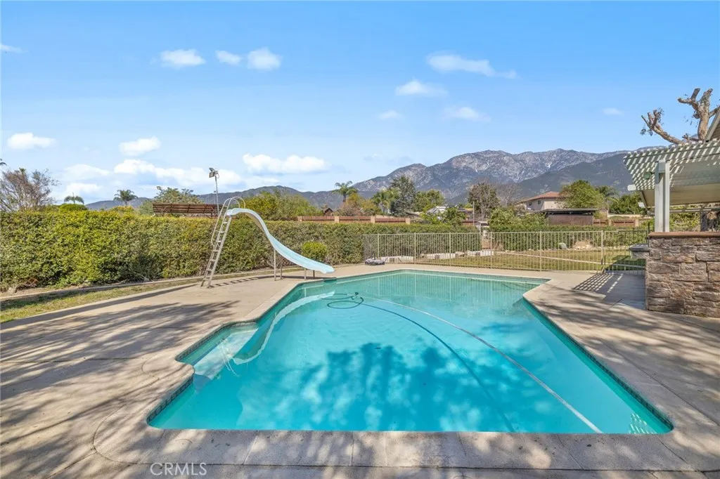 Discover 8520 Buggy Whip Rd, a remarkable 4-bedroom home perfectly situated on a quiet cul-de-sac in Rancho Cucamonga. Boasting just under 2,000 sq ft of living space, breathtaking mountain views, striking curb appeal, and an oversized driveway, this residence makes an unforgettable first impression. Situated on an expansive ~12,000 sq ft lot that feels even larger, this property offers exceptional space and versatility. The backyard is an entertainer’s dream, featuring a sparkling pool perfectly tucked away, a safety fence, and a built-in BBQ area that seamlessly connects to the pool space. Mature trees create a private, park-like setting, leaving endless options for additional landscaping, recreation, or expansion. A unique highlight is the bridal path behind the property, complete with a double gate providing easy access for RVs, trailers, or recreational toys—perfect for those who need both space and convenience. Inside, the home features updated flooring throughout and a thoughtfully designed layout. The private primary suite wing offers a true retreat, with a spacious bedroom, a dual sink vanity, and a cozy fireplace for added warmth and luxury. The remaining three bedrooms are located upstairs, providing separation and comfort for family or guests. The kitchen is designed for both function and flow, featuring a breakfast bar and opening both ways to the formal dining area or living room—perfect for entertaining. Additional upgrades include dual pane windows, recessed lighting, ceiling fans in every bedroom, indoor laundry, and a 3-car garage with direct access. The home is part of the highly acclaimed Alta Loma School District, including Alta Loma Junior High and Alta Loma High School, providing top-rated education for families. Convenient freeway access further enhances the lifestyle, making commuting and weekend getaways effortless while enjoying the comfort and charm of this exceptional property.