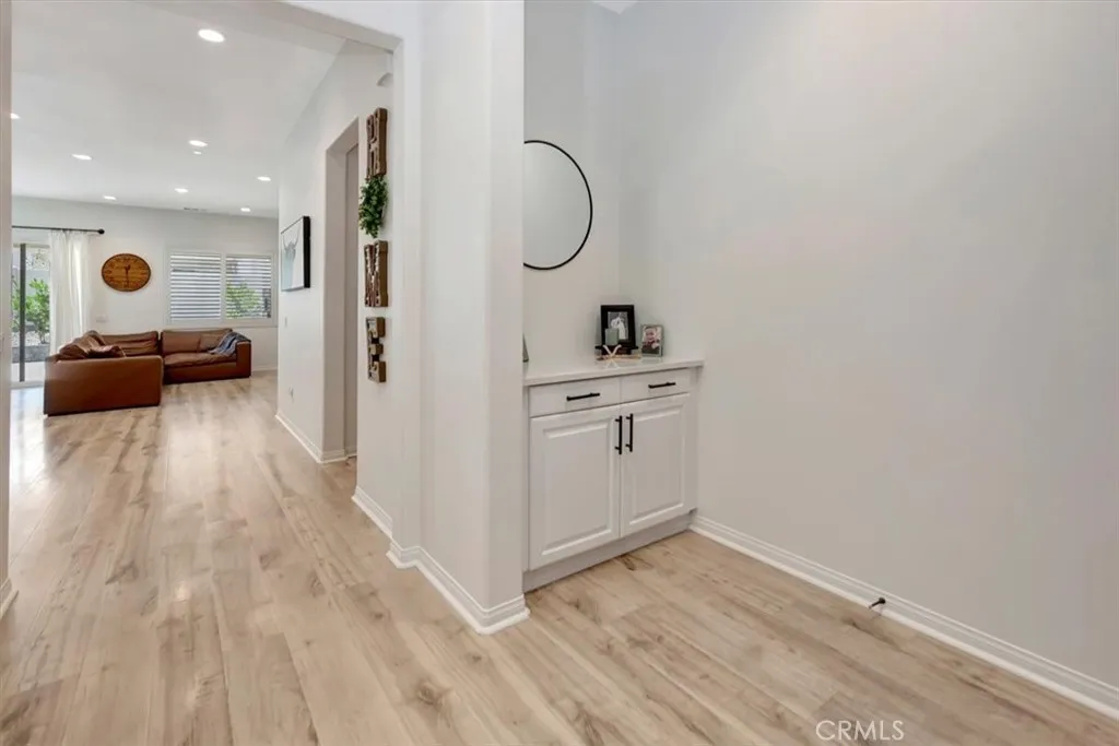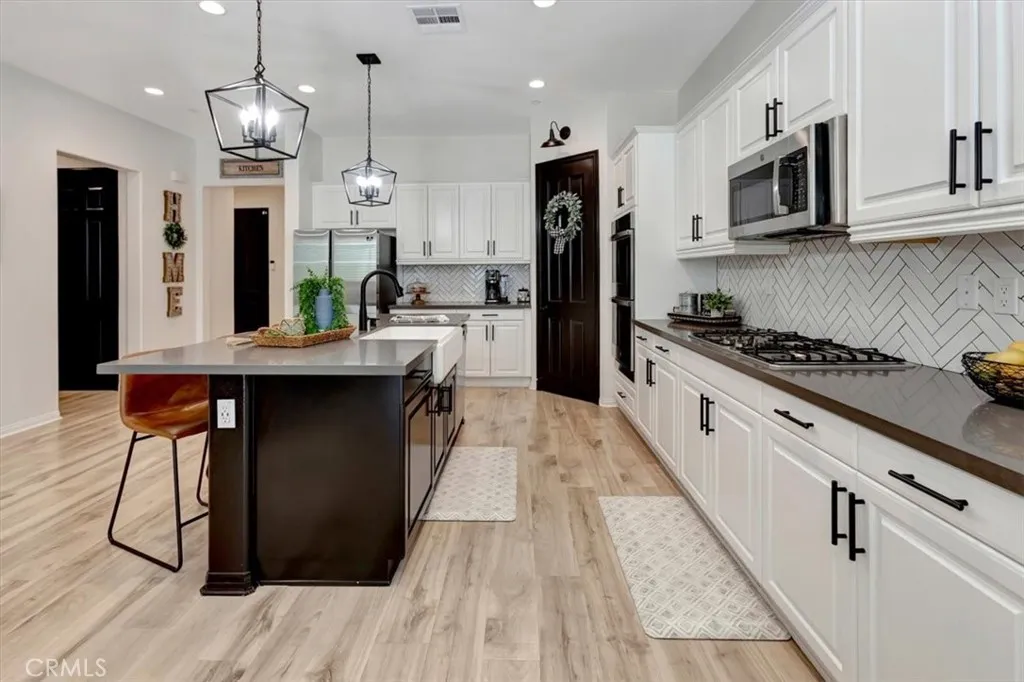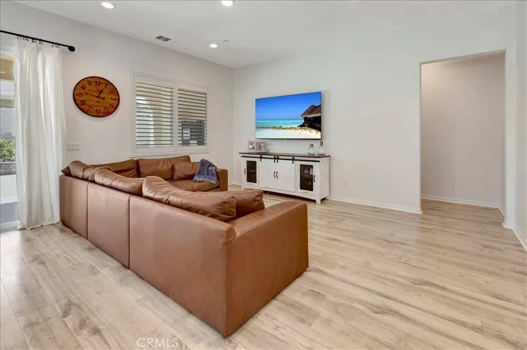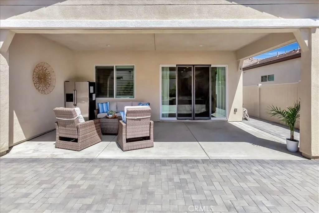 Beautifully appointed single-story home nestled within the gated community of Bedford, offering the perfect blend of comfort, style, and modern living. This beautifully upgraded residence spans approximately 2,210 square feet of thoughtfully designed living space, featuring soaring ceilings and an open and inviting floor plan ideal for both everyday living and effortless entertaining. From the moment you arrive, you are welcomed by a light-filled, airy layout that immediately feels like home. The expansive great room flows seamlessly into a beautifully appointed kitchen, complete with a large center island, double oven, walk-in pantry, and ample space for gathering. A separate dining area provides additional flexibility, creating the perfect balance of casual and refined living spaces. The spacious primary suite offers a private retreat, featuring an oversized walk-in closet and a spa-inspired bathroom with dual vanities, a soaking tub, and a separate shower. Three additional generously sized bedrooms and two well-appointed bathrooms provide comfort and versatility. Additional highlights include an interior laundry room and a two-car attached garage with direct access and abundant custom storage. Step outside to a custom-designed backyard featuring upgraded pavers, creating a sophisticated setting for outdoor entertaining or quiet relaxation. The home also includes solar through SunPower, enhancing energy efficiency and long-term savings. Residents of Bedford enjoy an exceptional lifestyle within a private gated setting with a low HOA. Ideally located for commuters, the community offers convenient access to major routes connecting to Orange County and beyond while helping to avoid heavy traffic along the 15 and 91. Nearby, you will find top-rated schools, scenic hiking trails, shopping, and some of the area’s finest dining. Resort-style amenities include multiple pools and spas, playgrounds, walking trails, a dog wash station, a fully equipped fitness center, and smart home integration with a community app for easy access to amenities. This home truly combines comfort, convenience, and elevated community living, making it the perfect place to call home.