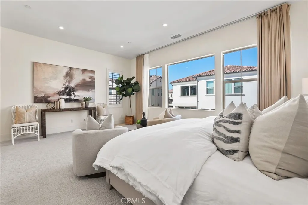 Your luxury residence is located in the prestigious Portola Springs community. With over $300,000 in upgrades, this move-in ready luxury home offers a resort-style backyard and a premium private, quiet location. This beautifully upgraded Cielo Plan 2 residence built by Shea Homes features a bright and airy open-concept floor plan with dramatic 20-foot ceilings. The spacious Great Room flows seamlessly into the dining area and gourmet kitchen, creating the perfect space for everyday living and entertaining. The first floor also includes a guest bedroom with a private bath and an additional powder room. The chef-inspired gourmet kitchen is equipped with Wolf and Sub-Zero stainless steel appliances, quartz countertops, designer backsplash, upgraded cabinetry, a walk-in pantry, and a large center island with seating. Upstairs, the grand primary suite features a luxurious bathroom and His and Hers walk-in closets. Two additional spacious en-suite bedrooms, a versatile loft, and a laundry room with sink and window complete the second level. The professionally landscaped backyard with fruit trees provides a peaceful setting for relaxation and entertaining. The two-car garage includes an EV charging outlet. Additional upgrades include 26 fully paid solar panels, motorized living room curtains, RH Light Fixtures, an automatic water softener system, and plantation shutters throughout. Residents of Portola Springs enjoy exceptional resort-style amenities including multiple Jr. Olympic pools, wading pools, parks with shade structures, playgrounds, BBQ and picnic areas, basketball, volleyball, tennis, and pickleball courts, scenic walking trails, and more. Portola Springs Community Park features a community center, lighted softball and soccer fields, and additional recreational facilities. Ideally located in Irvine, close to shopping, dining, major freeways, recreation, and top-rated schools.
