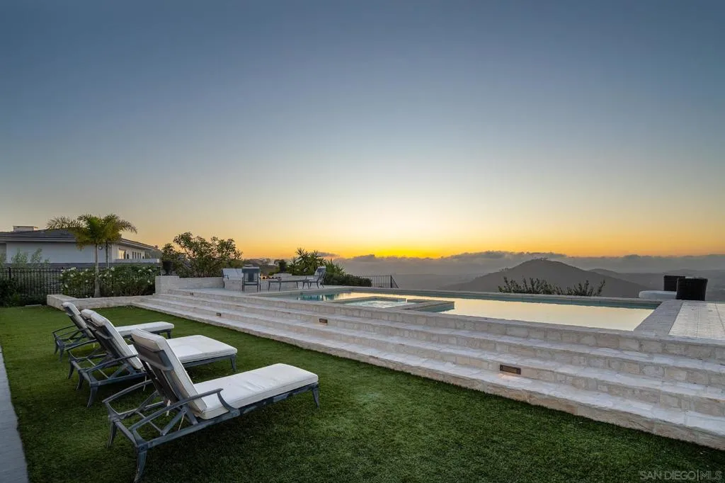 Some homes have views. This one owns the horizon. Perched at the pinnacle of Cielo, Rancho Santa Fe's most prestigious and coveted gated enclave, this breathtaking bespoke custom estate commands 270-degree panoramic views spanning the Pacific Ocean, Catalina Island, and the pristine Elfin Forest Reserve one of the most dramatic, irreplaceable, and sought-after view corridors in all of North County San Diego. Set on 2.55 sprawling acres at the community's highest elevation, this rarified setting is simply unmatched and unrivaled. Interiors reflect an unwavering and masterful commitment to curated global artisanship and refined modern luxury. Imported Moroccan tile, opulent Carrara marble, hand-laid Italian stone floors, soaring exposed wood beam ceilings, and an exquisite collection of bespoke lighting and statement chandeliers create a sophisticated, distinguished aesthetic that is both boldly contemporary and timelessly elegant. Every sumptuous finish is intentional. Every thoughtfully appointed detail speaks with authority. Beyond the walls, the magnificent estate transforms into an exclusive private resort. A custom pool and spa anchor expansive, beautifully appointed entertaining terraces designed for effortless and seamless indoor-outdoor living. A covered loggia with fireplace, a premium alfresco outdoor kitchen with artisanal wood-burning pizza oven, lush manicured grounds, and a flourishing curated private orchard complete a setting of unrivaled leisure, tranquility, and understated elegance. A grand, sweeping custom motor court delivers an arrival experience CIELO | RANCHO SANTA FE-Where the Pacific Meets Perfection Some homes have views. This one owns the horizon. Perched at the absolute pinnacle of Cielo Rancho Santa Fe's most prestigious gated enclave this breathtaking custom estate is in a category entirely its own. On 2.55 acres of elevated prime land, the panorama unfolds in every direction: the Pacific Ocean, Catalina Island, and the untouched ridgelines of the Elfin Forest Reserve a seamless, uninterrupted sweep of 270 degrees that stops you cold the moment you arrive. Morning fog rolling off the ocean. Golden hour painting the canyon. Catalina glowing on the horizon at dusk. This view is not a feature. It is the experience. ARCHITECTURE MEETS ARTISTRY Step inside and the commitment to excellence is immediate and absolute. The interiors speak a language of rare global materials and fearless design imported Moroccan tile that catches light like jewelry, Carrara marble in its most sculptural form, hand-laid Italian stone floors that ground every room with quiet authority. Soaring exposed wood beam ceilings draw the eye upward while bespoke chandeliers and statement lighting command attention at every turn. This is not a decorated home. This is a crafted world where contemporary boldness and timeless luxury exist in perfect tension. Every finish deliberate. Every detail considered. Every room a destination. YOUR PRIVATE RESORT AWAITS Beyond the walls, the estate unfolds into something extraordinary. A custom pool and spa shimmer against the backdrop of open sky and endless views. Expansive entertaining terraces stretch across the grounds, designed for the kind of living that feels effortless and cinematic at once. A covered loggia with fireplace blurs the line between inside and out. The premium outdoor kitchen anchored by a wood-burning pizza oven overlooks manicured gardens and a curated private orchard, where abundance feels as natural as the breeze off the Pacific.Arrival itself is an event. A grand custom motor court sets the tone from the first moment an entrance as commanding as everything that follows. THE ADDRESS. THE DISTRICT. THE LEGACY. Situated within the celebrated Rancho Santa Fe School District and nestled within one of Southern California's most sought-after gated communities, this estate represents the rarest of intersections: architectural vision, panoramic coastal grandeur, and absolute...