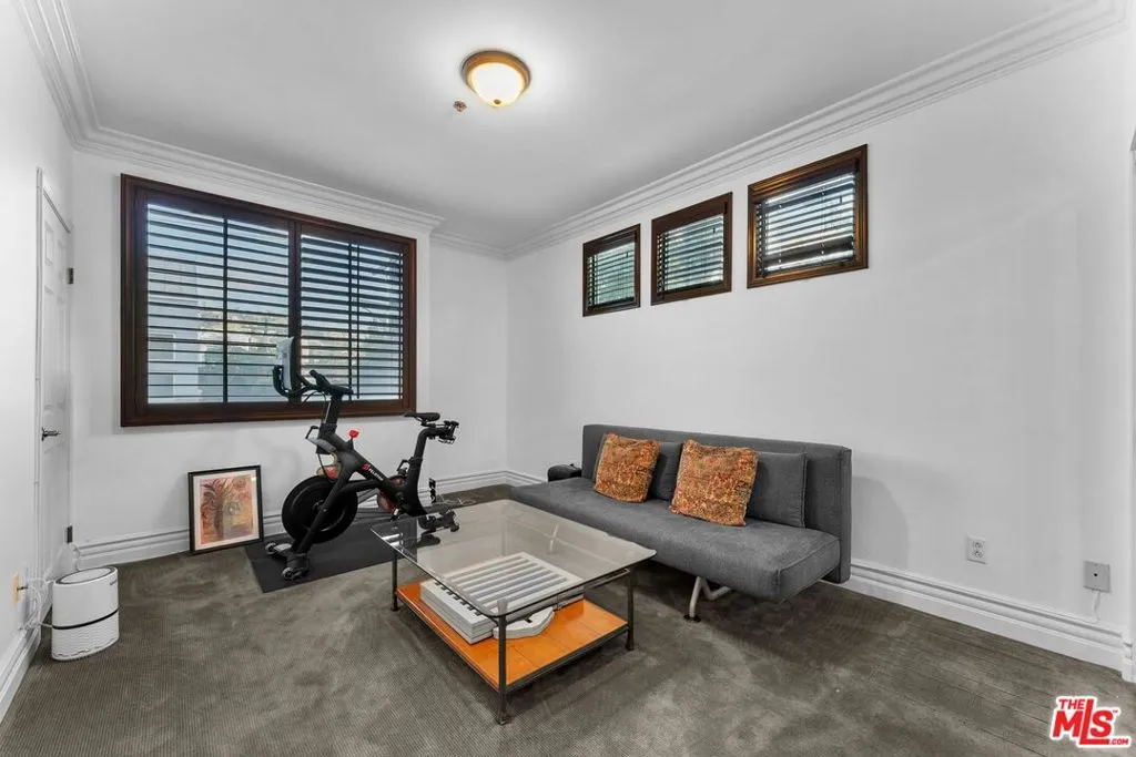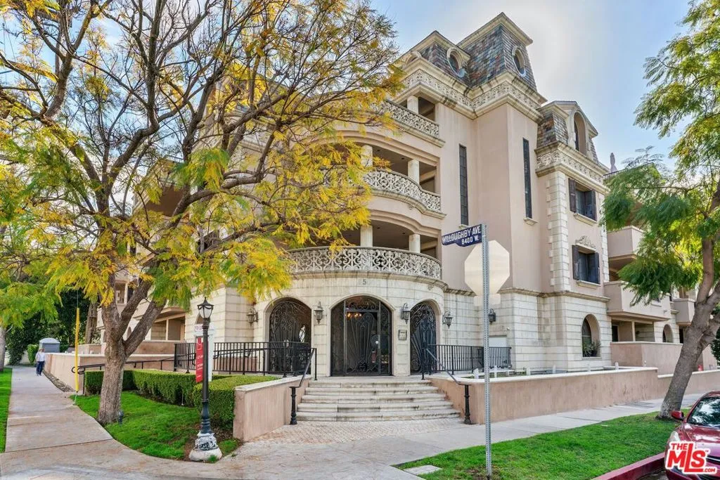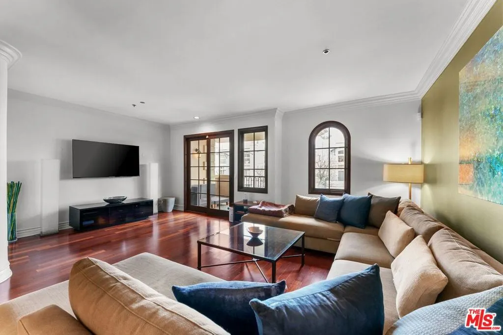 Tree top and Hollywood Hills views.Perfect floor plan for living with separated bedroom suites on opposite sides of the home. Living room, dining room, kitchen (with bar top seating), and common gathering area offer privacy and distance from the bedrooms on either side of the living room area. In-home laundry setup, 2-car parking. Private terrace with tree-top views and coveted higher floor location above the streets of West Hollywood. The feel of New York meets California living as the conveniences of cool cafes, local and nationally recognized restaurants, the newest high end grocery store and gathering spot for coffee, reading or working and world-renowned Melrose Place are just outside the doors of this popular stately corner building just North of Melrose and South of Santa Monica Blvd.