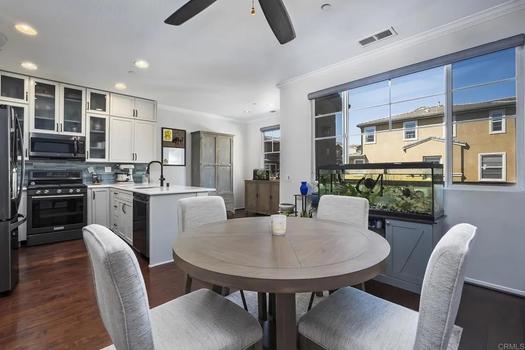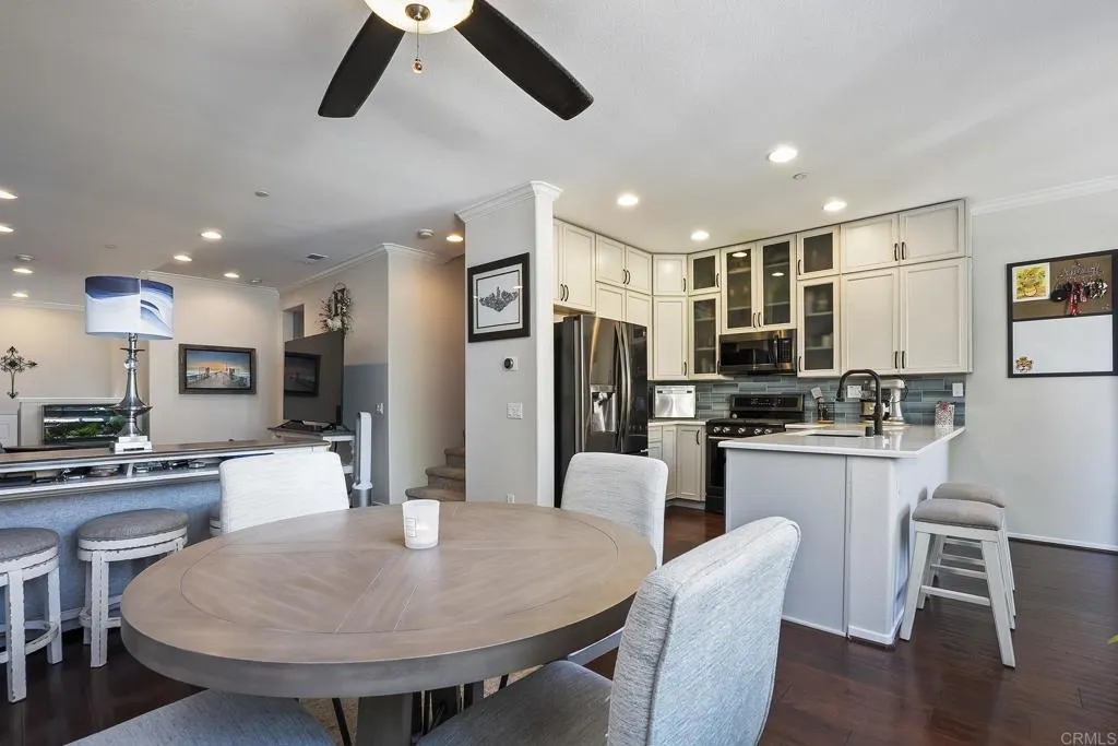 BEAUTIFULLY UPGRADED 4 BEDROOM, 4 BATH HOME WITH 1977 SQ FT IN THE HIGHLY SOUGHT AFTER NEIGHBORHOOD OF RIVERWALK IN SANTEE AND THIS ONE IS LOADED, INCLUDING WOOD FLOORING, CROWN MOLDINGS, DUAL PANE WINDOWS, PAID FOR SOLAR, AUTOMATIC BLINDS, GORGEOUS REMODELED KITCHEN WITH QUARTZ COUNTERS, BREAKFAST BAR ALONG WITH BLACK STAINLESS APPLIANCES, PRIVATE BALCONY, FORCED A/C AND HEAT, CEILING FANS, RECESSED LIGHTING, LARGE LIVING ROOM, LOTS OF WINDOWS WITH VIEWS TO THE GREENBELT, SPACIOUS GUEST BEDROOMS, MIRRORED WARDROBE DOORS, PRIMARY BEDROOM HAS A WALK IN CLOSET, PRIMARY BATH HAS A DUAL VANITY AND A SOAKING TUB/SHOWER, LOCATED NEAR SCHOOLS, YMCA, SHOPPING AND RESTAURANTS. HOA AMMENITIES INCLUDE TOT LOT, CLUBHOUSE, GREENBELTS, POOL, SPA AND MUCH MORE.