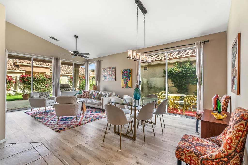 Welcome to the largest floor plan in The Oasis Country Club, offering three bedrooms, two bathrooms, a living room and family room in approximately 1,787 square feet of comfortable living. The home is filled with natural light and features an upgraded kitchen, along with a spacious great room that opens to an inviting backyard and patio--ideal for relaxed afternoons or entertaining. Direct access to the garage adds convenience to the everyday living experience. Well-positioned within the community, this residence provides convenient access to one of Oasis Country Club's many pools while still maintaining a sense of privacy. Known as one of the friendliest communities in the area, Oasis offers a warm, welcoming atmosphere and a full calendar of activities. Residents enjoy 18 pools and spas, a welcoming clubhouse, pickleball courts, and an award-winning 18-hole executive golf course. A rare opportunity to enjoy a well-appointed home in a community celebrated for its charm, active lifestyle, and easy resort-style living.