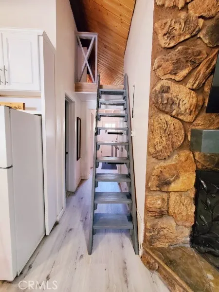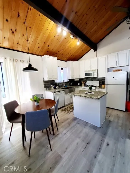 Nestled among the trees in the desirable Running Springs mountains, this beautifully updated cabin offers the perfect blend of comfort, charm, and convenience. Featuring 2 bedrooms, 2 bathrooms, and in-home laundry, the home sits on an easy-access lot ideal for full-time living or a weekend retreat. Step inside to an open and inviting living area complete with a cozy fireplace, perfect for relaxing mountain evenings. The upgraded kitchen and bathrooms provide modern touches while maintaining the home’s warm, rustic appeal. Enjoy both front and rear decking, ideal for morning coffee/tea, entertaining, or simply taking in the peaceful, wooded surroundings. Conveniently located near Highway 18, this home offers easy commuting access while still being just moments from local shops, dining, and year-round outdoor recreation.