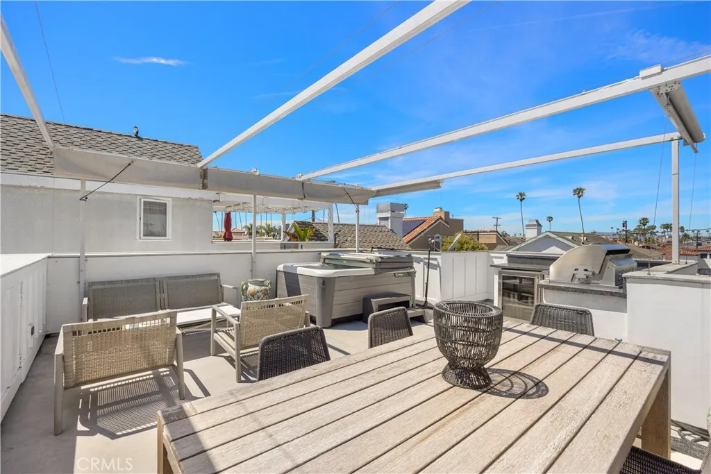 Positioned within the prestigious Estates section of Naples Island, 75 Angelo Walk is a masterfully reimagined coastal residence that embodies modern luxury, architectural precision, and effortless indoor-outdoor living. Spanning approximately 2,916 square feet, this 3-bedroom, 3.5-bath home has been completely rebuilt with an uncompromising commitment to quality, design, and detail. A striking façade of clean lines and contemporary form sets a compelling first impression, while inside, a light-filled open floor plan unfolds with warmth and sophistication. Wide-plank hardwood floors, soft tones, and curated lighting create a refined backdrop for everyday living and elevated entertaining. At the heart of the home, a bespoke chef’s kitchen seamlessly pairs form and function, featuring professional-grade stainless steel appliances, handcrafted cabinetry, stone countertops, a statement island with bar seating, and an integrated wine refrigerator. The adjoining dining and living spaces flow effortlessly, anchored by a custom-designed fireplace wall with built-in shelving, offering both comfort and architectural interest. The upper level introduces a secondary living area designed for flexibility, along with well-appointed guest accommodations showcasing vaulted ceilings, designer finishes, and en-suite privacy. The primary suite is complete with a custom walk-in wardrobe and a spa-inspired bath featuring a sculptural soaking tub, dual vanities, and an expansive walk-in shower. A private balcony extends the experience, offering a tranquil setting for morning light and ocean air. Crowning the home, the rooftop terrace delivers a resort-caliber experience with a fully equipped outdoor kitchen, BBQ, wine refrigerator, jacuzzi, and multiple lounge areas—all enhanced by retractable awnings for year-round enjoyment and privacy. Beyond its aesthetic appeal, the residence is thoughtfully engineered for sustainability and efficiency, featuring fully paid solar panels and dual Tesla Powerwalls—allowing for significant energy independence rarely found in luxury coastal homes. Completing the offering is a 2-car attached garage and an unparalleled location just moments from the canals, beaches, and the vibrant dining and boutique scene that defines Naples Island. This is a rare opportunity to own a turnkey architectural home that seamlessly blends modern design, coastal elegance, and cutting-edge efficiency in one of Long Beach’s most coveted waterfront communities.