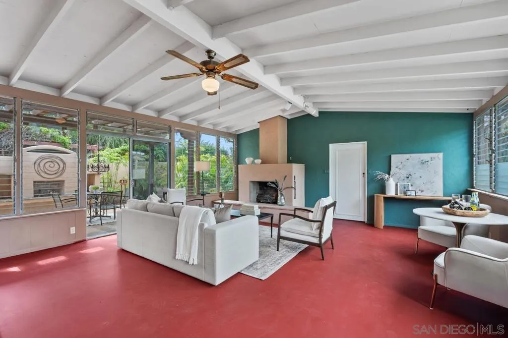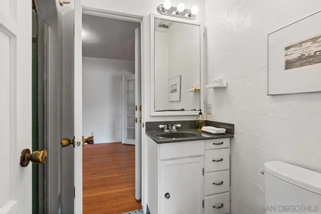 She’s a small gem in the heart of North Mission Hills. A charming 1939 Spanish, single level home, with lovely barrel ceilings, an arched entry to the dining room, and original hardwood floors. She could stand a little zhuzhing; there is potential to create your dream kitchen and bathrooms, but her heart is true. 1309 sq ft per the tax roll with a transformational additional 499 sq ft light-filled “great room” (unpermitted) created between the house and the garage that opens onto your private courtyard. Her premier location and her ultra lush drought-tolerant xeriscape front and side yards understatedly announce her desirability in one of San Diego’s most coveted neighborhoods. She has 3 bedrooms and two bathrooms and I’m not going to lie; there is some work you are going to want to do to refresh her original “bones” and make her your own. But her position on a prime corner lot in North Mission Hills a block from both the West Lewis Business District in one direction and Francis Parker Lower School in the other speak to her intrinsic worth. Two split units provide air conditioning. Sharing a cozy evening with friends in her embracing living room will contrast with the joyful exuberance of entertaining in the generosity of space known as the “great room”. Guests can flow from there onto the stone patio under the pergola in front of your outdoor fireplace and spread out into your walled courtyard. Or enjoy a quiet morning coffee or dinner a deux al fresco in a peaceful private sanctuary of your own creation. Owned by a treasured neighbor for almost 30 years, 4144 Palmetto Way is eagerly awaiting her new life.
