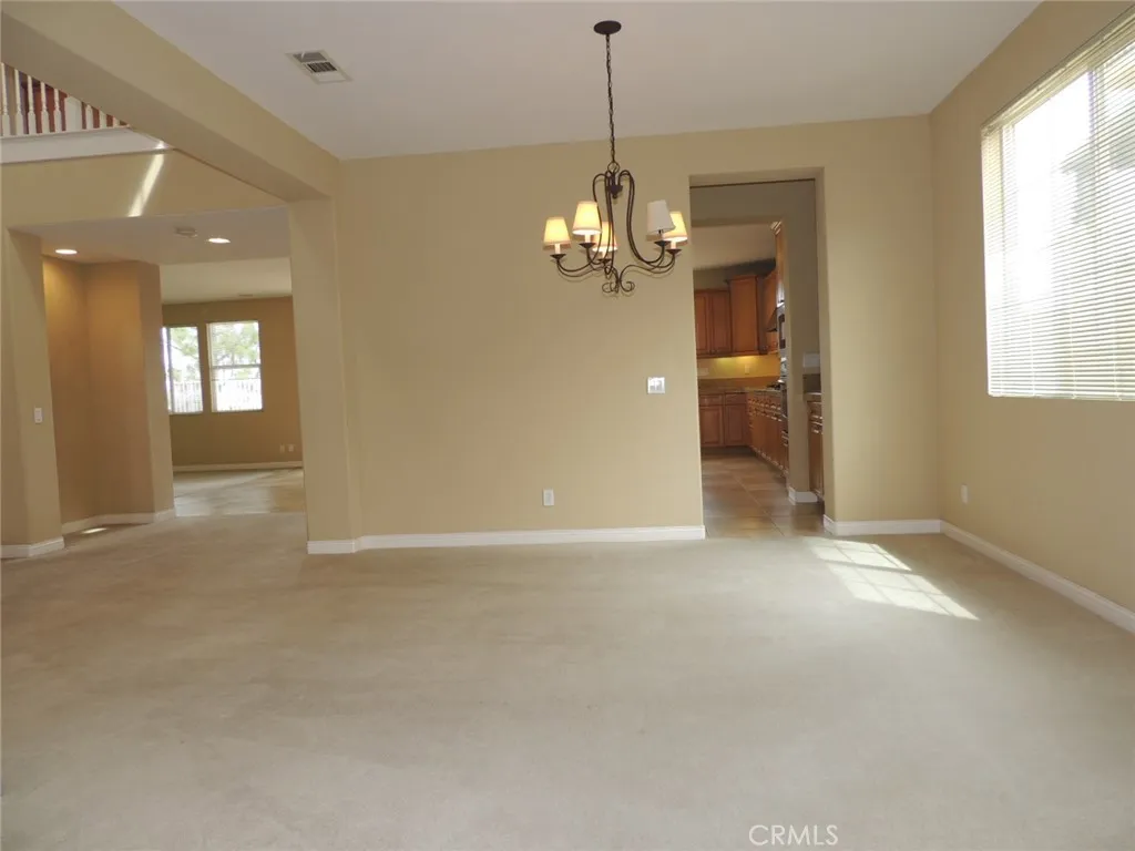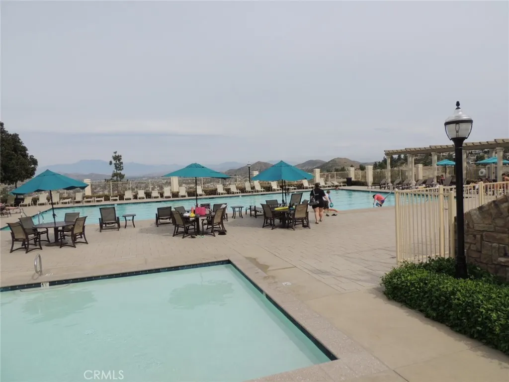 Canyon and lake view house. Entry with high ceilings. Living room with fireplace adjacent to formal dining area. Downstairs half bath with vanity sink and toilet. Large and open kitchen next to family room with built in ceiling speakers and fireplace overlooking fenced backyard. Huge kitchen with tiled counters, stainless steel hood, microwave, and oven. Kitchen island with cabinets. Kitchen cabinets with pull outs. Upstairs master bedroom with retreat opens to balcony. Master bathroom with separated shower and tub, his and her vanity sinks and walk-in closet. Jack and Jill bedrooms with shared bathroom. Carpet flooring throughout the house except kitchen, bathrooms, laundry room and kitchen. Enjoy Tuscany Hills HOA offers tennis court, volleyball court, basketball court, pools/spas, gated children playground, club house with amenities. 3 car tandem garage with direct garage access. Laundry room upstairs with sink. Dual outdoor AC condensers. Backyard covered porch area with view.