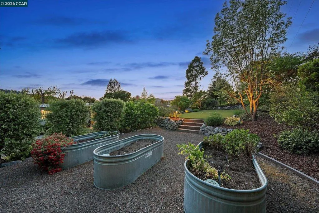 Set back from Ivy Drive, this single-level mid-century modern home offers style, comfort, and a prime Orinda location moments from Del Rey Elementary, Orinda Intermediate School and Miramonte High School. Featuring 4 bedrooms, 2 full and 2 half baths, and 2,348 sq ft. Hickory floors span the main living areas and one bedroom, with new carpet in the others. The spacious primary suite includes a walk-in closet and spa-like bath with a Victoria + Albert soaking tub, dual-head shower, heated tile floors, and double vanity. California Closets in three bedrooms; bathrooms feature Caesarstone counters. Family room with stunning fireplace, built-ins, and hardwired Bose soundbar. Kitchen offers Caesarstone counters, island seating, stainless steel appliances including French door refrigerator, double ovens, new gas cooktop, wine fridge, and pet station. Backyard by Garden Lights features sport court, raised vegetable beds, and outdoor kitchen with Neolith counters, wood burning pizza oven, BBQ, fridge, fire pit, and space for dining under a pergola. Owned solar and foam roof for energy efficiency. A must see!
