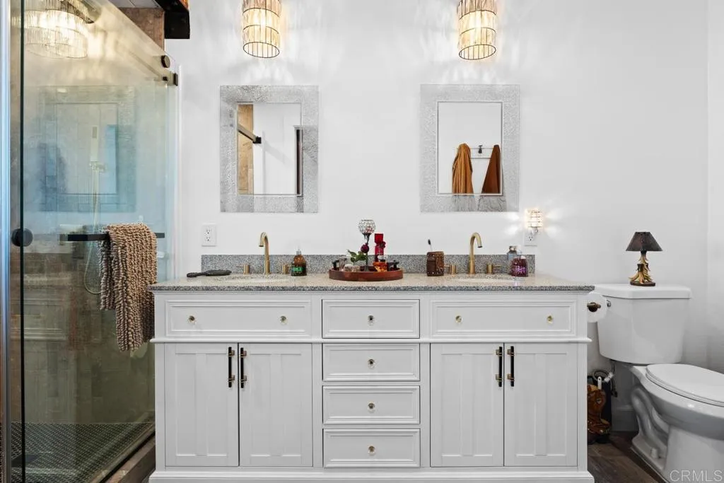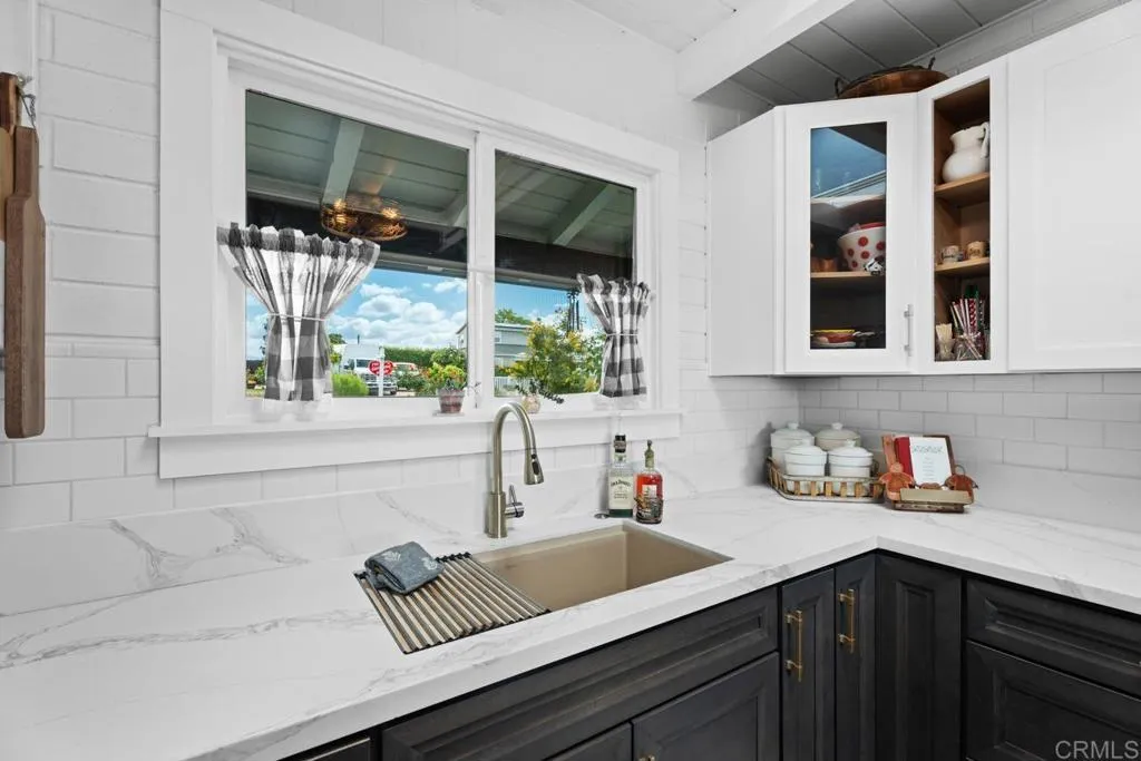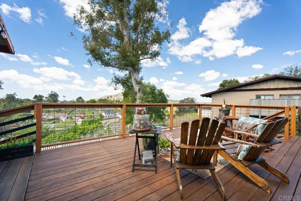 Experience Fletcher Hills at its finest. From the moment you enter the circular drive, the tranquil succulent & wildflower garden creates unforgettable curb appeal. This fully remodeled pristine home blends timeless elegance with modern luxury. Rich, original hardwood floors, soaring wood beamed ceilings, & Milgard windows with plantation shutters create a warm sophisticated ambience, while bringing in plenty of natural light. A cozy brick fireplace completes the feel of this comfortable living space. The dream kitchen features a grand farmhouse island, breakfast counter for two, quartz countertops & premium finishes, opening seamlessly to a barbecue area & a fabulous 58’ viewing deck – perfect for watching the sunsets & ocean views, or outdoor entertaining. Retreat to the luxury primary suite with fireplace, rustic beam, spa inspired Italian marble shower with soothing rain shower head, dual vanities, multiple expansive walk-in closets, & a private patio for your morning coffee. The grounds are an entertainers paradise: lush lawns, Meyer lemon, plum, apple, & nectarine fruit trees, & a prize-winning rose garden. A spacious , 1 bedroom detached guest house features a wall of picture windows, private deck & driveway, completing this versatile property – ideal for guests, multigenerational living, or rental income. This home has it ALL! This isn’t just a home, It’s the lifestyle you dream of! Attention to detail & thoughtful design in every room: Chandeliers, modern ceiling fans & custom lighting, making this place a true show stopper.