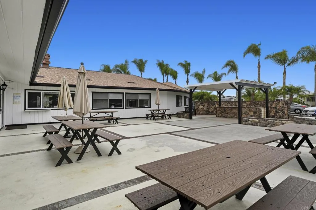 Enjoy a peek-a-boo ocean view sunset from your large hard wood porch! This beautiful and spacious 2 bedroom 2 bath located on a gently sloping corner lot surrounded by gardens, porches, patios, and views! Uniquely private and useable lot is completely landscaped front, back, and side yards. Low water succulents and plumeria in front, lime, lemon, and avocado in back and delicious fig on the side yard. The large home has been wonderfully updated with space for formal living area, family area, and a den/office. The large open kitchen with views to the west is perfect for the chef of the house. Enjoy a large master bedroom with over sized closet and slider to a private patio. Get ready for fun community activities or just unwind in your remodeled bathroom with quartz counters, lots of cabinet space and a claw foot tub. Large lot is one of the most spacious in the Community and adjacent to 3 guest parking spaces and shady tree on the West side of home. Walking distance to putting green, lawn bowling, and picnic area. The community has a pickleball, pool, tennis courts, club house and community events! Walk to shopping, bank and restaurants. Located just a short drive from Carlsbad, Encinitas, Vista, or Escondido, this freshly extensively renovated home is Move-In Ready! No property tax. Space fee is $685 per month and includes water/trash /sewer