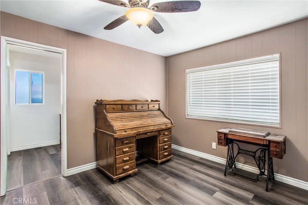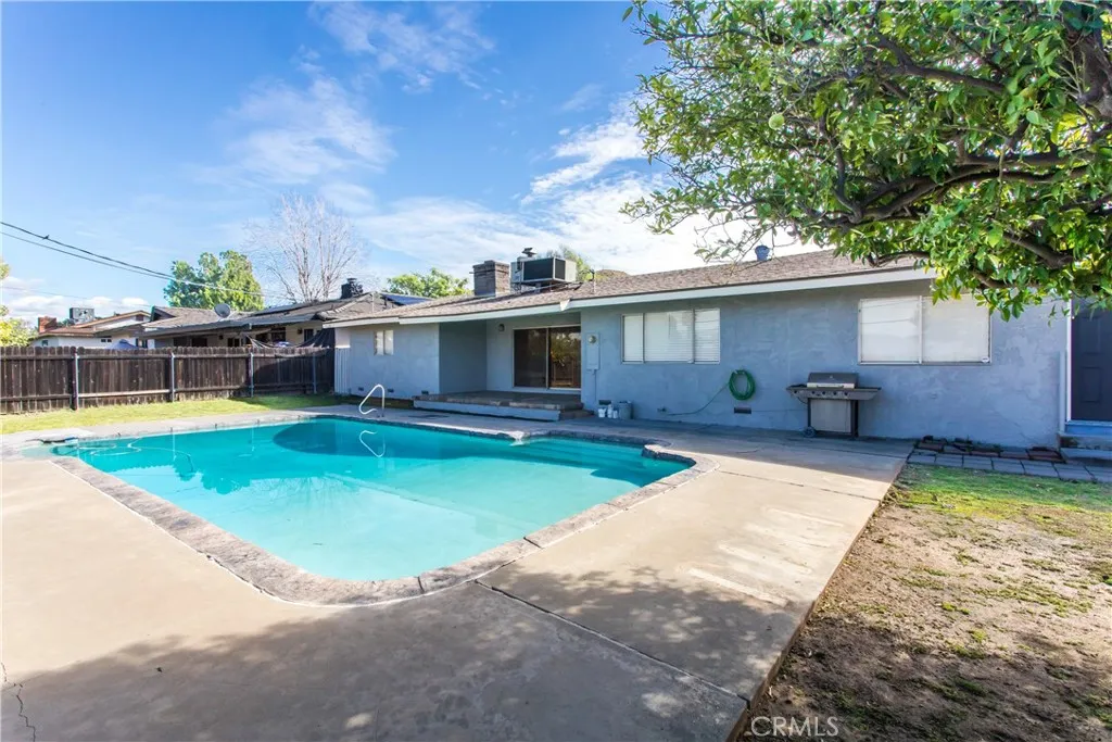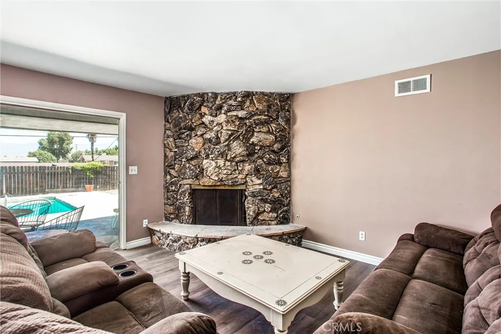 Blue Mountain bliss--refreshed and better than ever! Charm meets flexibility in one of Grand Terrace’s most sought-after midcentury neighborhoods. This single-level home now shines with fresh exterior paint, new landscaping, and renewed curb appeal, offering a truly move-in ready opportunity. A rare dual primary suite layout offers options for multigenerational living or extended guest stays. Enjoy sweeping panoramic views of the valley and San Bernardino mountains from your private pool deck, and soak in serene Blue Mountain vistas from the oversized front yard. Inside, character and comfort await. The heart of the home features multiple living spaces, including a cozy living room anchored by a custom stone fireplace with raised hearth, vintage breezeblock accents, and abundant natural light through a large sliding glass door. The spacious adjacent family and dining room flows effortlessly into a corner kitchen with classic built-ins, dual ovens, and a warm, retro feel. On one side of the home, a secluded primary suite includes its own en suite bath plus private access to the garage and backyard. Down the opposite hallway, discover a second primary suite with its own full bath, along with two additional bedrooms that share a hall bath full of charming vintage character. Outside, the freshly resurfaced pool is fireworks-ready with front-row seats to citywide shows, plus plenty of space to customize the backyard to your taste. An attached two-car garage offers built-in shelving and loft storage. Additional highlights include fresh vinyl flooring throughout, ceiling fans, and updated light fixtures. Set in the heart of a peaceful, walkable neighborhood near top-rated schools, parks, hiking trails, and family-friendly amenities, this gem delivers space, soul, and something special around every corner.