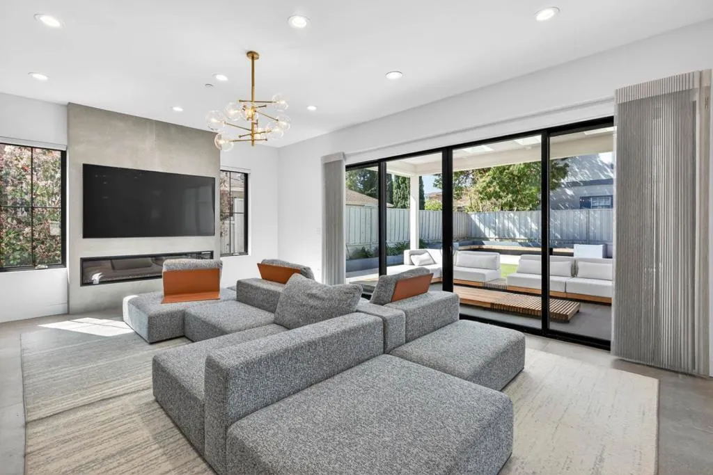 Newer 2024 built contemporary home in the highly sought-after Monta Vista neighborhood, near Apples Infinite Loop & Spaceship Campus, major tech hubs, & Hwys 85 & 280. Top-rated schools include Lincoln Elem., Kennedy Mid., & Monta Vista High. Featuring a bright open-concept layout with high tray ceilings, recessed lighting, skylights, & large-format tile flooring. Flow connects the family room, dining area, kitchen, & outdoor living spaces. The family room showcases a linear fireplace & feature wall. The kitchen has a large center island, two-tone cabinetry, stainless steel appliances: built-in refrigerator & wall ovens, cooktop, hood, butlers pantry, & designer fixtures. A dedicated bonus room & spacious upstairs loft with built-in workstation, floor-to-ceiling storage, wet bar, & beverage fridge. The primary suite features a private balcony, spa-inspired bath with freestanding soaking tub, dual floating vanity, slab-style tile walls, frameless glass shower with niches, designer sconces, & water closet. Designer-appointed bathrooms throughout, dedicated laundry room, & custom mudroom. Exterior features a covered patio with skylights, additional open patio, expansive paver areas, & a private fully fenced backyard with lawn, hardscape, & low-maintenance landscaping.