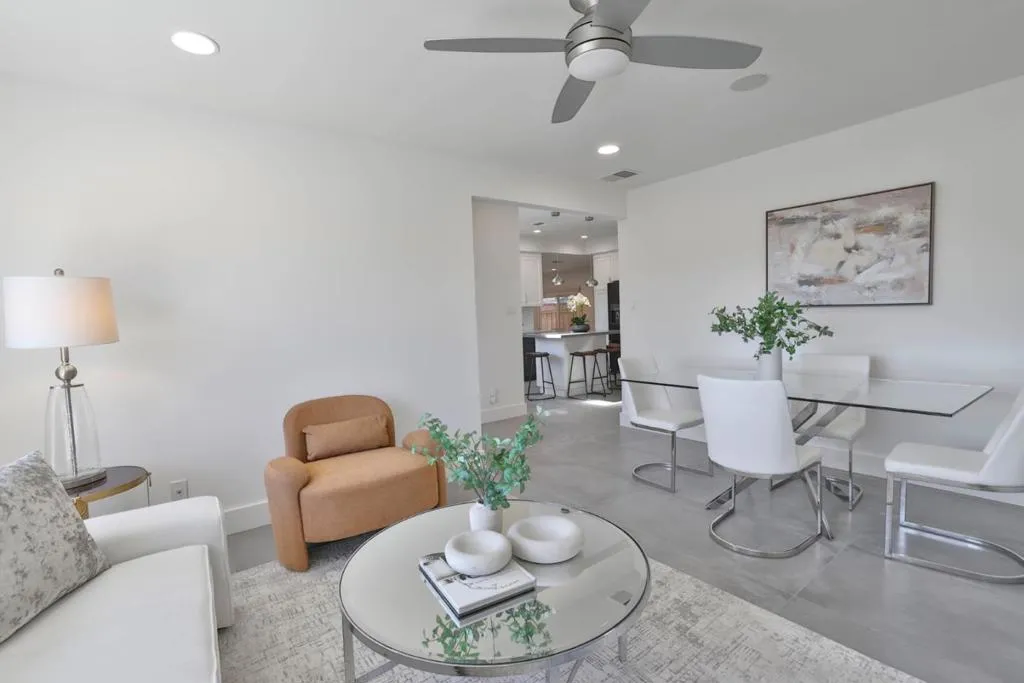 Modernized and move-in ready, this light-filled Blossom Valley gem perfectly blends style with everyday functionality. The heart of the home is a thoughtfully updated kitchen featuring quartz countertops, shaker cabinetry, stainless steel appliances, and a spacious island. A charming coffee bar and overhead skylight add a custom feel to the bright, open space. The versatile layout includes both a separate living room and a family room, which flows seamlessly through sliding glass doors to a beautifully crafted covered patio. Ideal for year-round entertaining, the outdoor space is complete with built-in speakers and pre-wiring for a flat-screen TV. With four well-appointed bedrooms and two tastefully updated bathrooms, there is ample space for a home office or guests. Major upgrades provide total peace of mind, including a new furnace, new water heater, and updated flex piping (no galvanized plumbing). Enjoy modern luxury and an unbeatable location in one of San Jose's most desirable neighborhoods.