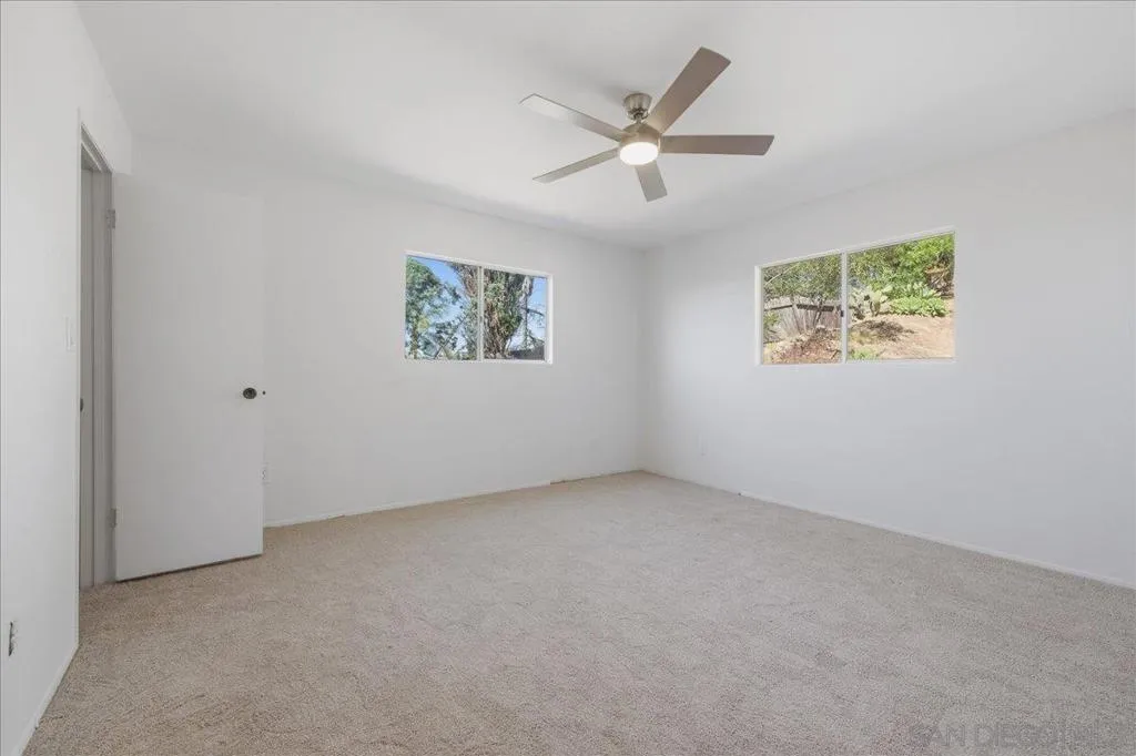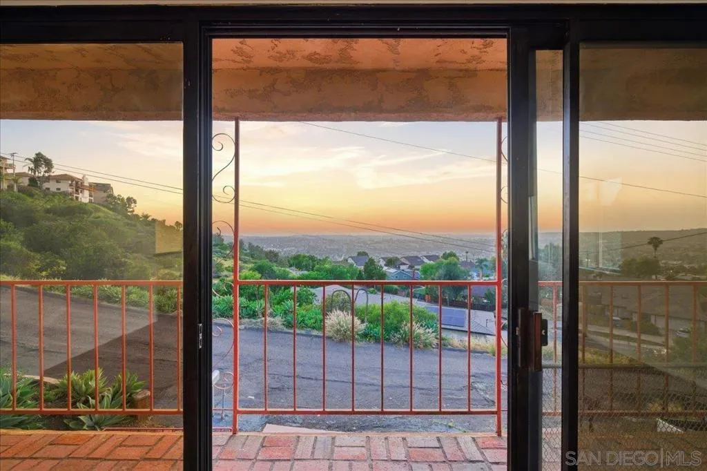 Perched on a prime elevated lot, 2017 Grand Ave offers breathtaking, unobstructed westward views stretching all the way to Coronado and Point Loma. Because of its unique elevation, this quiet hillside pocket feels private and removed from the valley floor, yet remains perfectly commuter-friendly with quick access to Hwy 94 and Hwy 125. While the home retains its classic charm, the heavy lifting has already been done for you. Move in with confidence knowing the property features a brand-new HVAC system and owned solar panels. Complementing these major mechanical upgrades are fresh interior touches, including newly painted walls, brand-new carpet throughout, and a new kitchen stove. The home greets you with a truly unique, custom stained-glass double entry, featuring a vibrant sunset that fills the foyer with colorful light. Step inside to an open living room anchored by a cozy brick fireplace, where large sliding glass doors lead to a private balcony. This space captures a fantastic year-round breeze and serves as the ultimate front-row seat for insane nightly sunsets over the Pacific. The functional floor plan includes a primary bedroom with its own ensuite bathroom, while two additional bedrooms share a hall bath. The exterior layout is designed for ultimate convenience with two separate driveways: use the lower drive for direct access to the under-house garage, or the upper driveway for level-entry access to the side of the home, making grocery runs and hosting guests a breeze. Enjoy the perfect blend of coastal views and a central location in this move-in-ready home, waiting for you to bring your vision and make it your own.