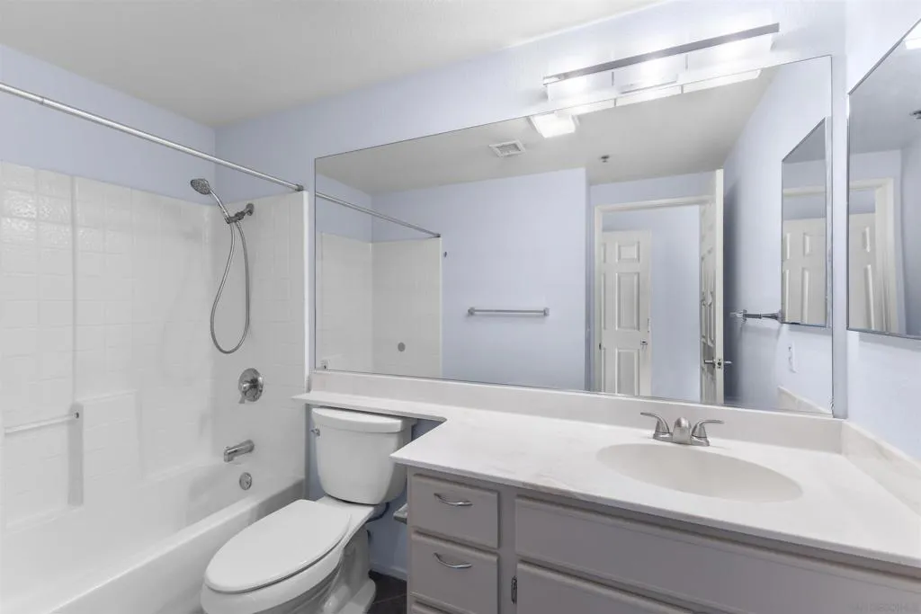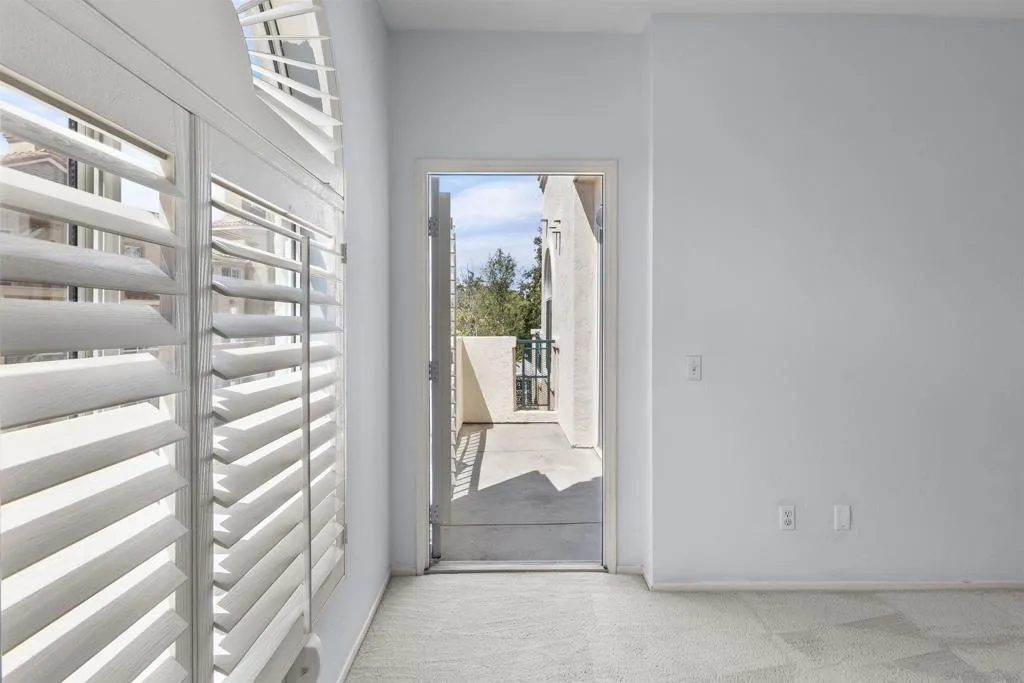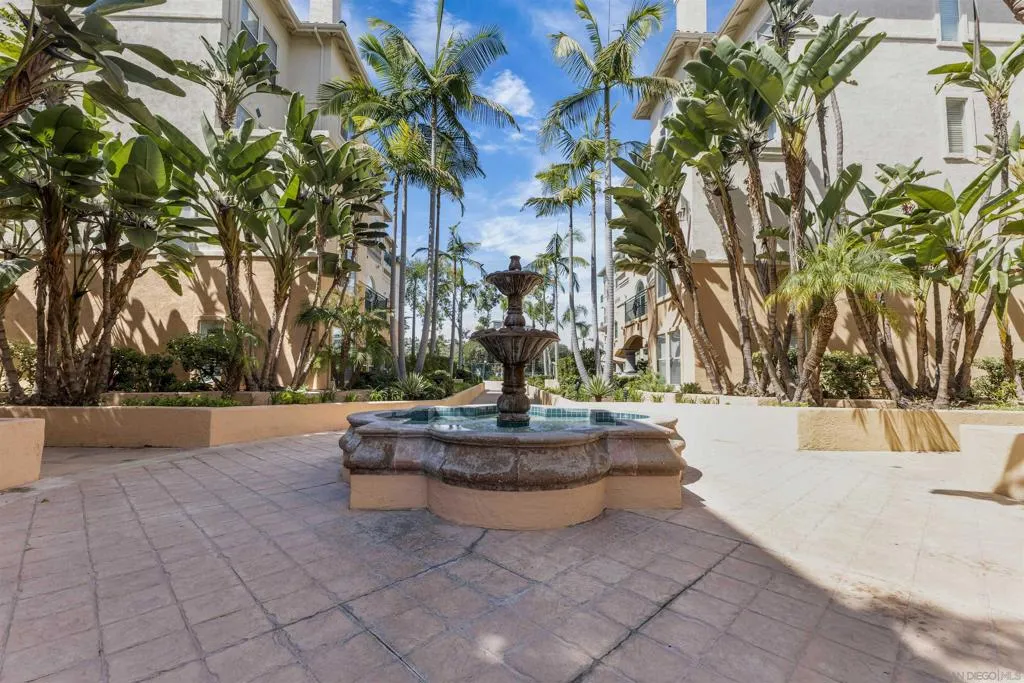 Welcome to Rio del Oro, one of Mission Valley’s most central and sought-after gated communities. Tucked away in a quiet interior courtyard, Unit #1109 offers a rare 2-bedroom plus office layout that perfectly balances a peaceful retreat with immediate access to two premier malls, fine dining, and the Trolley. **Property has a VA assumable loan at a 5.5% interest rate for qualified buyers.** The main floor is designed for easy living, featuring an updated kitchen with granite counters, stainless steel appliances, and ample cabinet storage that opens to a dedicated dining area. A functional corner fireplace anchors the space between the kitchen and the living room. One of the home's standout features is the private home office, enclosed by a glass French door and fully built out with a custom desk, bookshelves, and storage drawers. From the living area, slide open the doors to an oversized private patio, where the sounds of courtyard fountains and the shade of palms create a resort-like atmosphere. Upstairs, you’ll find two spacious bedrooms, each with its own private bathroom. Both rooms offer direct access to a shared upper balcony, perfect for catching the evening breeze. Life at Rio del Oro feels like a resort, with a pool, hot tub, and gym just steps from your door. Right behind the pool area, you’ll find direct access to the San Diego River Trail, a scenic path that allows joggers and cyclists to travel all the way to Ocean Beach. HOA covers water, sewer, and trash, while the unit includes two assigned corner spots in the parking garage for extra space and easy access. It is a rare find that perfectly combines work-from-home utility with immediate access to San Diego’s best nature trails and urban amenities.
