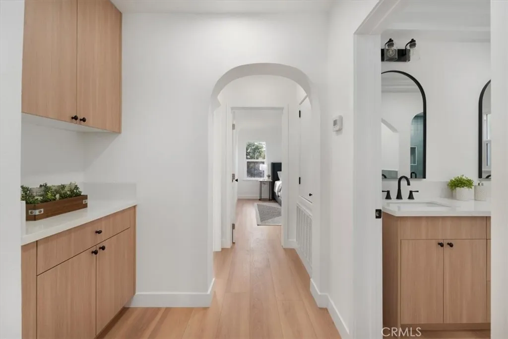 Nothing left to do but fall in love. Nestled in the heart of historic Leimert Park, where leafy, tree-lined streets and iconic Spanish architecture evoke the timeless elegance of Los Angeles' golden era, this masterfully reimagined 3-bedroom, 2-bathroom residence is the perfect blend of classic charm and modern sophistication. Set on a generous lot, the home is a rare study in balance honoring its original character while delivering a truly elevated, contemporary living experience. Large windows bathe the interiors in natural light, while upgraded interior and exterior doors create a seamless, refreshed flow throughout. Expansive archways open sight lines and enhance connection between the living, dining, and chef's kitchen spaces. The kitchen is a showstopper: new wood cabinetry, hardware, and exquisite quartz countertops anchor the space with timeless luxury. Each bathroom has been thoughtfully redesigned for both style and comfort. The primary suite features a newly configured bath with new counters and finishes. A fully new hallway bath completes the ensemble, with cohesive, high-end fixtures. Beyond its beauty, this home delivers exceptional infrastructure and peace of mind. Enjoy year-round comfort with a new HVAC system and thermostat, a high-efficiency tankless water heater, an upgraded 200-amp electrical panel LED lighting. Step outside to find meticulously landscaped grounds designed for both relaxation and entertaining. Fresh sod, lush new plantings, and decomposed granite pathways invite you to linger. A new wood fence ensures privacy. Even the garage received a facelift with a new door and refreshed stucco on the rear facade for a crisp, polished look. All upgrades were completed permits. Added touches like new wooden gates at the driveway and side yard. Blending timeless character with modern upgrades, this home is a truly rare offering in one of Los Angeles' most vibrant, culturally rich, and connected neighborhoods. Minutes from West Adams, USC Village, the Expo and Crenshaw Metro lines, and with easy access to LAX, Downtown LA, and Culver City. Enjoy some of LA's best local spots including The District, Highly Likely, Harold & Belle's, and Jon & Vinny's all just moments away.