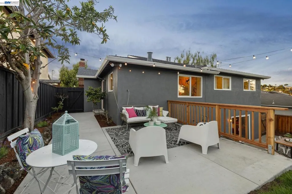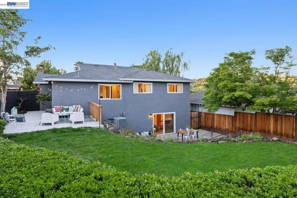 The beautiful East Bay hills are the backdrop to this stylishly upgraded 3+BD/2.5BA Mid-Century Castro Valley home on a quiet, coveted cul-de-sac near Lake Chabot. Throughout the 1774 SQFT home, abundant windows and glass doors fill the rooms with sunlight and verdant views. Relax or entertain in the spacious living and dining area with fireplace, picture window to the park, and sliding doors for seamless indoor/outdoor living. Hardwood floors extend into the updated kitchen with new appliances, countertops, cabinetry, and a bright breakfast nook overlooking the landscaped backyard. The sleeping wing features a primary suite with hillside views and ensuite bath, plus two generous bedrooms with large closets near a full hall bath. Downstairs offers interior access to the two-car garage, laundry with sink, powder room, and a flexible space ideal as a family room or office, with sliding doors to the patio. The expansive yard includes raised garden beds, patios for dining, level lawn, and a secluded garden retreat. Close to Lake Chabot, A+ schools, BART, and downtown Castro Valley.