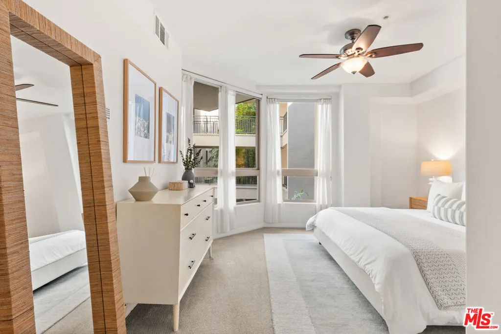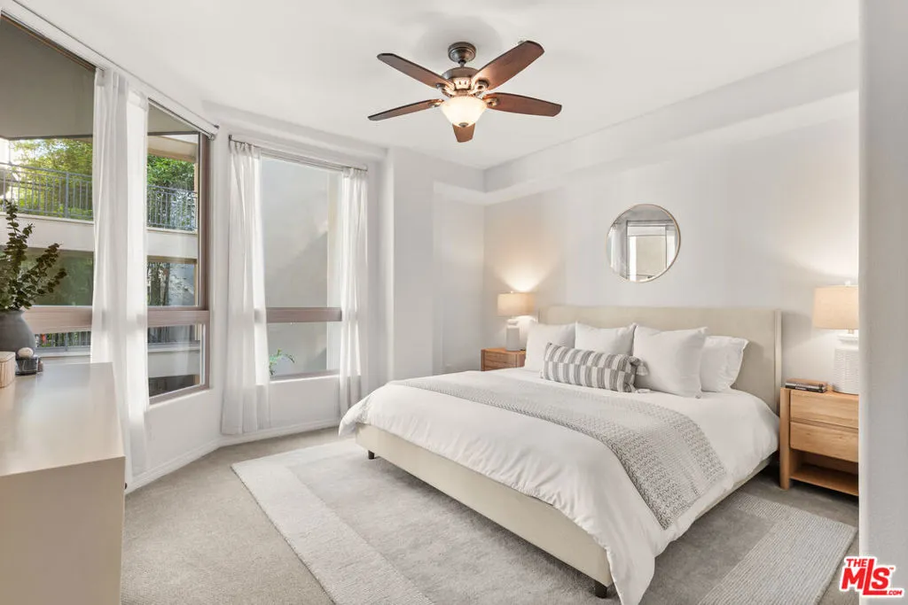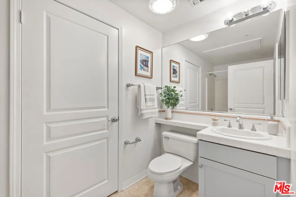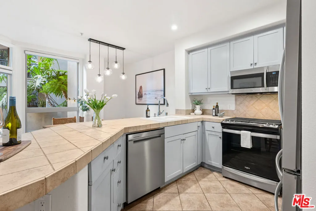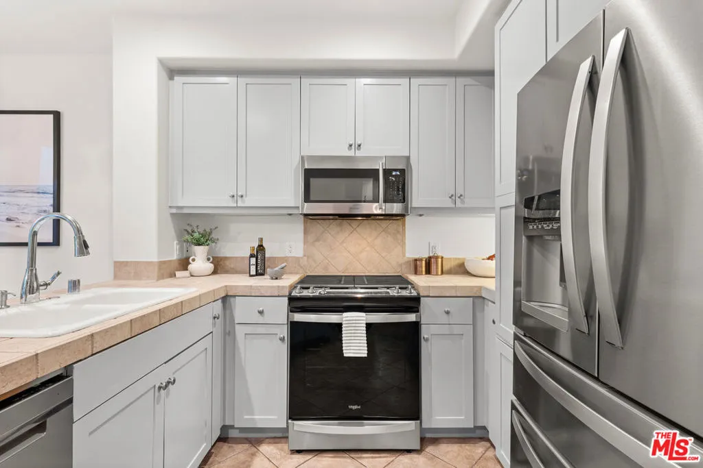 Flooded with natural light, this modern, south-facing two-story townhome-style residence is ideally situated just steps from Concert Park in the heart of Playa Vista. Spanning 1,488 sqft, this 2 Bed + Den, 2.5 Bath unit showcases soaring ceilings, expansive windows, and a thoughtfully curated floor plan designed for both refined living and effortless functionality. The main level offers a seamless blend of style and comfort, featuring an open-concept living and dining area, a well-appointed kitchen with stainless steel appliances and tile countertops, and a versatile den perfectly suited for a private home office or additional lounge space. A spacious enclosed patio extends the living area, creating an inviting indoor-outdoor setting ideal for entertaining, while a convenient powder bath completes the first floor. Upstairs, both bedrooms are thoughtfully situated for privacy. The primary suite serves as a tranquil retreat, complete with a generous walk-in closet and a well-appointed en-suite bath. A secondary bedroom is complemented by a full hall bathroom, while a conveniently located upper-level laundry area enhances everyday ease. Fresh interior paint throughout further elevates the unit's move-in-ready appeal. Additional highlights include central HVAC and two assigned side-by-side parking spaces in a gated subterranean garage, along with ample guest and street parking. The community is also approved for VA financing. Residents enjoy access to Playa Vista's premier amenities, including The CenterPointe and Resort pools, spas, state-of-the-art fitness centers, 29 local parks, and three dog parks all within close proximity. HOA dues include internet, cable, water, trash, and access to Playa Vista's community gyms and pools, located just two blocks away. Ideally situated just steps from Concert Park and its surrounding shops and dining including Coffee Bean, Sweetfish, Ritrovo, Gulp, and more, this residence offers effortless access to the best of Silicon Beach & the greater Westside!