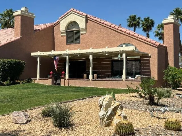 AVAILABLE JUNE 1, 2026. If you are looking for a 5 month summer home that is completely furnished and stocked with all you will need during your stay ! YOU JUST FOUND IT !. This 2 bed 2.25 bath is located at the highly desirable Oasis CC. Public play executive golf course, clubhouse (with Restaurants/Bar ), Fitness, Tennis, Pickle Ball. Doggie Park and so much more, Your sparkling pool and spa are a hop and a skip from this condo . This home is very cheerful and bright. The two main bedrooms (both feature king beds) and private baths are upstairs with the 3rd guest bath on main floor. Fireplace in open concept living room with soaring ceilings, slab granite stainless steel appliances in kitchen, All open to the outside patio that is covered and surrounded by a short pony wall, and privately located on a green space. Excellent for El fresco dining and Barbecuing . You have a lovely view of golf course and mountains beyond. Cable /Wifi Included, PETS WELCOME, attached garage. Call us today for a private viewing !!!!!!