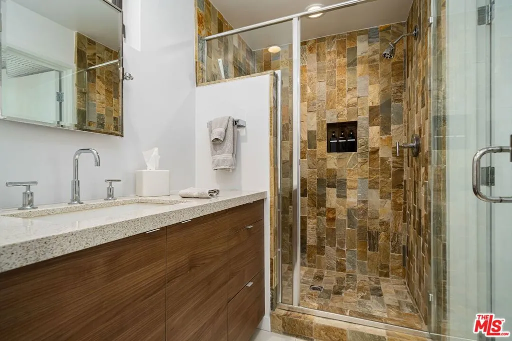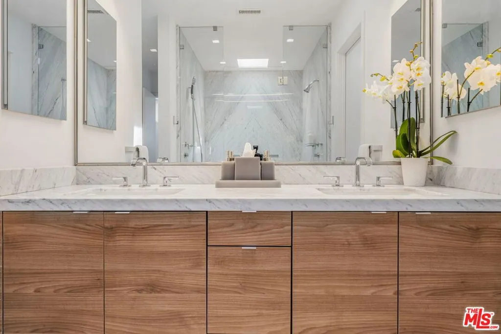 1530 Palm Colony Drive, Palm Springs - A Private Palm Springs Architectural Retreat Designed for Elevated Living. Perched within a private gated intimate enclave of just 19 residences built in 2005 in South Palm Springs, this exceptional fee-simple home is a study in design, intention, and quiet luxury set against the breathtaking backdrop of the San Jacinto Mountains. From the moment you arrive, there is a sense of entry into something rare, an environment defined by privacy, architectural clarity, and a refined connection to the surrounding landscape. Tucked within a peaceful, gated courtyard setting, the home offers a quiet retreat just moments from Palm Springs' most coveted lifestyle destinations. Conceived as a living gallery, the residence has been elevated through an extensive, design-driven remodel by award-winning Dallas firm Bodron Fruit and featured in INTERIORS Magazine bringing a level of architectural intention and refinement rarely found in the desert. Every detail reflects that vision: Clerestory windows invite natural light to move gracefully throughout the interiors, while museum-quality recessed lighting, wall washers, and art spotlights create a dynamic canvas, designed to showcase a collection or simply elevate everyday living and atmosphere. The result is a home that feels both curated and deeply livable. The interiors are striking yet serene. Porcelain terrazzo floors provide a seamless, gallery-like foundation, while soaring ceilings and expansive walls of glass dissolve the boundary between indoors and out. A Carrara statuary marble fireplace and built in book shelve anchors the main living space with quiet sophistication, creating a setting that feels both grand and intentional. At the heart of the home, the volume-sque open-concept living, dining, and kitchen areas are designed for effortless entertaining. A custom indoor/outdoor bar connects through retractable glass panel, allowing gatherings to flow naturally to the private pool and spa set against panoramic mountain views that shift beautifully throughout the day. The kitchen is tailored for both design and performance, featuring custom cabinetry with retractable opaque glass panels and a suite of professional-grade appliances, including a Wolf range and oven, Sub-Zero refrigeration, and a whisper-quiet Bosch dishwasher each selected for style, longevity, precision, and elevated daily use. The primary suite offers a tranquil retreat generous in scale, with custom drapery, high ceilings, and a spa-inspired bath clad in Carrara marble. Fantini fixtures bring a level of Italian craftsmanship and precision, while a Kohler bidet enhances comfort and refinement. Guest spaces continue the narrative, including a steam shower and custom detailing throughout. Technology is seamlessly integrated, with a full Lutron system allowing effortless control of lighting, shades, and ambiance transforming the home from bright and airy by day to warm and cinematic by night. Outdoors, the experience is equally compelling. The private pool and spa are framed by mountain views, while thoughtfully designed exterior lighting enhances the architecture and landscape after sunset. A detached casita, complete with its own fireplace and wet bar, offers versatility as a guest retreat, creative studio, or private office. Built with modern systems and solar, this residence offers the best of Palm Springs living architectural integrity, contemporary infrastructure, and a level of design that would be exceptionally difficult to replicate today. Positioned just moments from local favorites like Koffi Palm Springs and the iconic Ace Hotel & Swim Club, the home offers access to the vibrant energy of the city while preserving a sense of retreat and exclusivity. This is more than a home, it's a fully realized lifestyle. A place where design inspires, privacy restores, and every detail has been considered to elevate the way you live.