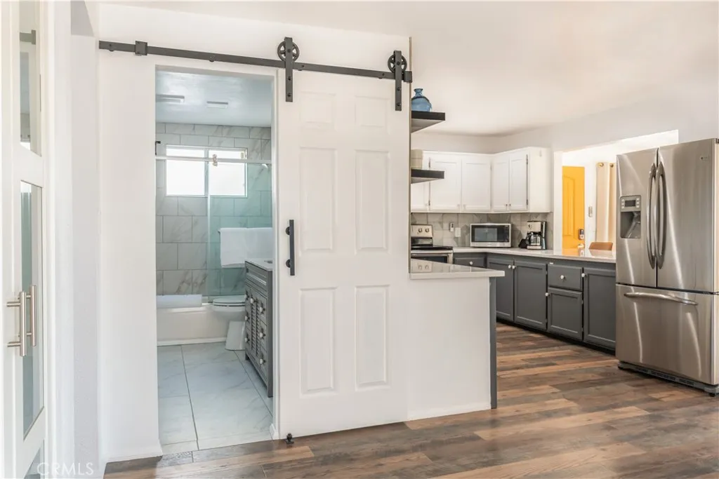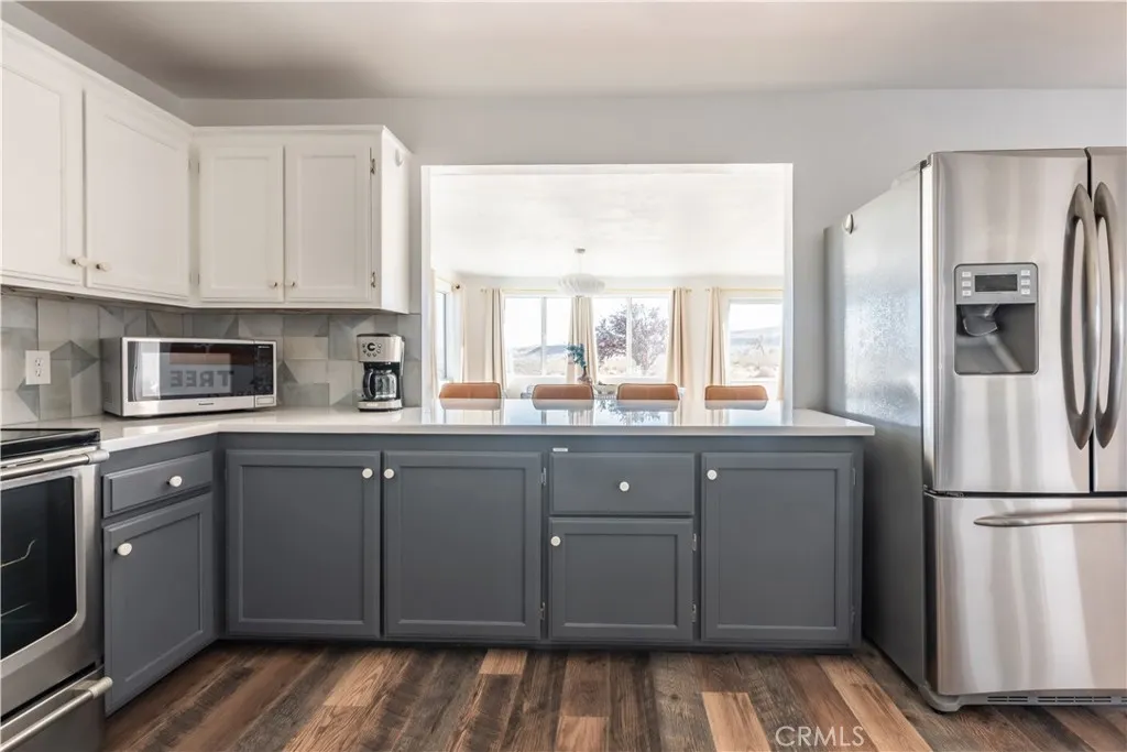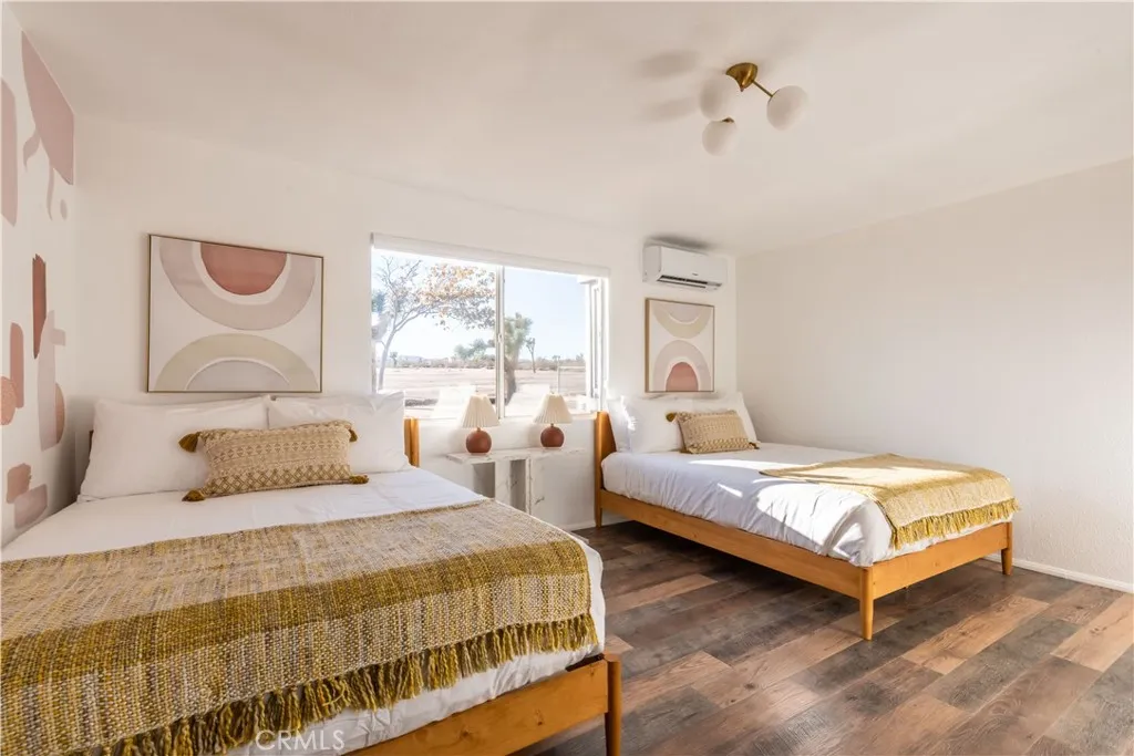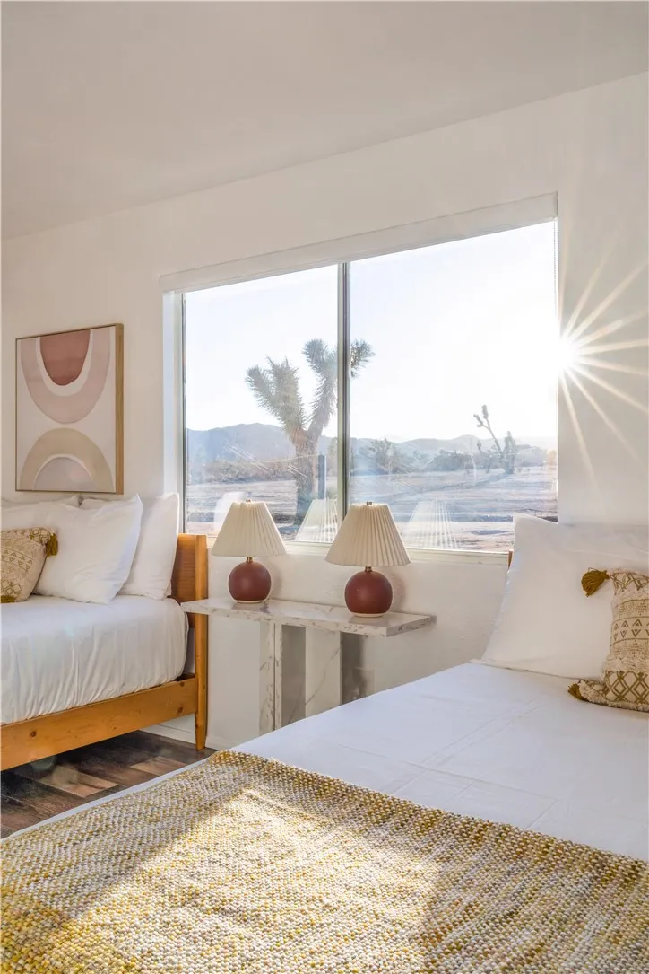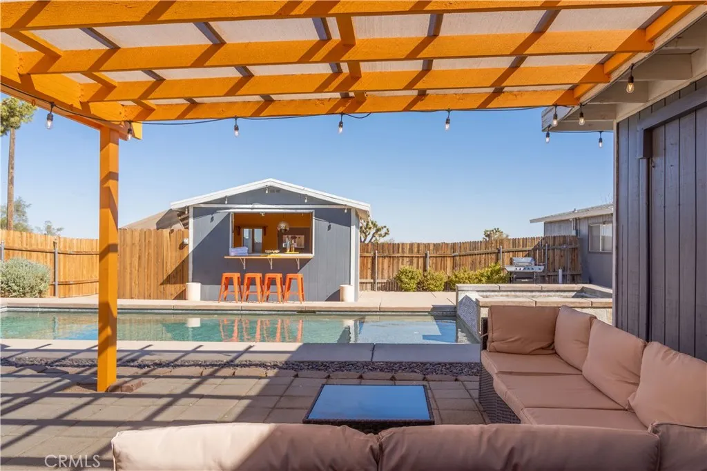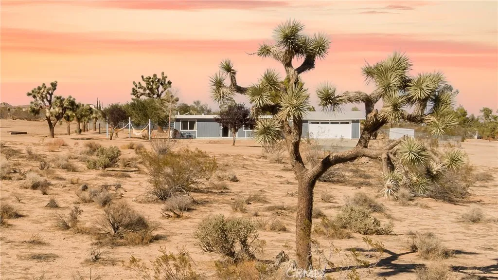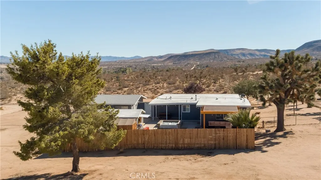 Remodeled POOL home on 1.8 acres with PAID SOLAR and Tesla Powerwall! Set against stunning natural surroundings with mature trees and iconic Joshua Trees, this beautifully upgraded 2-bedroom home offers the perfect blend of privacy, views, and modern comfort. Step outside to your own private resort-style backyard, featuring an enclosed pool area designed for ultimate seclusion. Enjoy a large pebble tech pool and spa, ideal for relaxing or entertaining, enhanced by a newer Jandy automation system that allows you to control the pool lighting, heater, spa jets, and water features right from poolside or your iPhone. The expansive outdoor space also includes generous concrete work throughout the pool area, driveway, and front porch, along with an outdoor dining area and a versatile storage shed. Inside, the home has been thoughtfully remodeled with new flooring throughout and a beautifully upgraded kitchen featuring quartz countertops and a designer backsplash. The light-filled living room showcases large windows that frame the scenic views while bringing in abundant natural light. The guest bathroom has been fully renovated with a tub and shower combo, while the primary suite offers direct access to the pool through a large sliding door, along with a fully remodeled ensuite bathroom complete with dual sinks, a walk-in shower with dual showerheads, and a spacious walk-in closet. With paid-off solar, a Tesla Powerwall for added energy efficiency and backup power, and a seamless indoor-outdoor lifestyle, this move-in ready home is a rare opportunity you don’t want to miss!