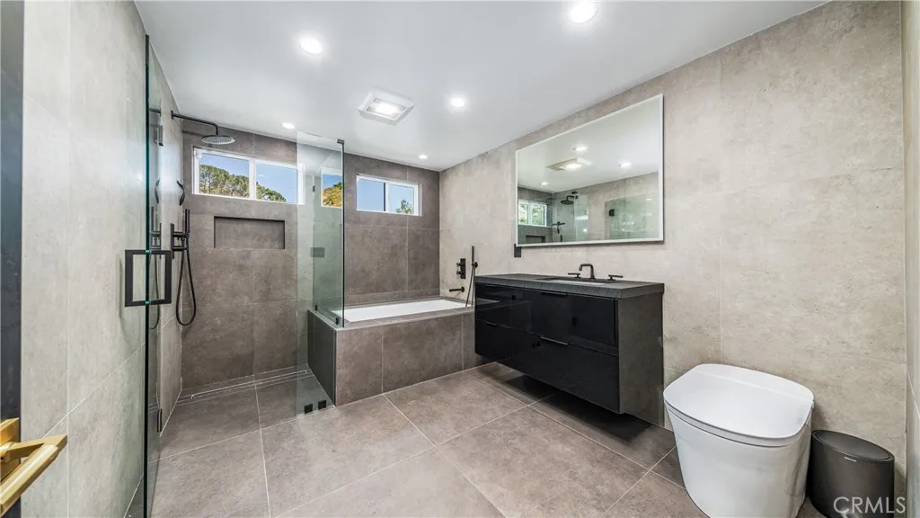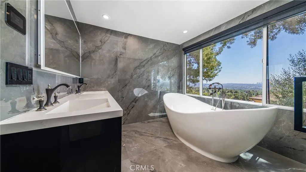 Perched atop a private one-acre hilltop lot in Burbank, this architectural masterpiece has been meticulously remodeled from top to bottom, offering 3,800 square feet of ultra-luxury living space with breathtaking 180-degree views of the city and canyon. No expense was spared in this comprehensive renovation, which includes a brand-new roof, updated electrical and plumbing, a tankless water heater, a whole-house water softener, and dual central AC systems for precision climate control. The heart of the home is a world-class chef’s kitchen featuring dual center islands with dramatic waterfall edges, a dedicated walk-in pantry, and a full suite of professional-grade Thermador appliances, including a six-burner stove, integrated refrigerator, separate freezer, and wine cooler. A separate, spacious laundry room adds to the home's thoughtful functionality. The open-concept floor plan flows into a sophisticated step-down family room anchored by a large fireplace and oversized windows. In the living room, massive sliding glass doors retract completely to bring the outside in, leading to an expansive entertainer’s patio. This outdoor oasis is equipped with integrated in-ceiling heaters, allowing you to enjoy the glittering city lights in total comfort year-round. The home offers four generous bedrooms and four and a half spa-caliber bathrooms. The primary suite serves as a massive private sanctuary with stunning city vistas, a grand walk-in closet, and a designer master bath equipped with double sinks, a deep soaking tub, and a custom steam shower. Representing the pinnacle of privacy and prestige, this estate delivers "new construction" quality and a lifestyle of elevated modern luxury.