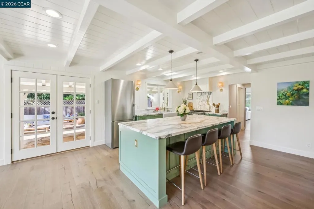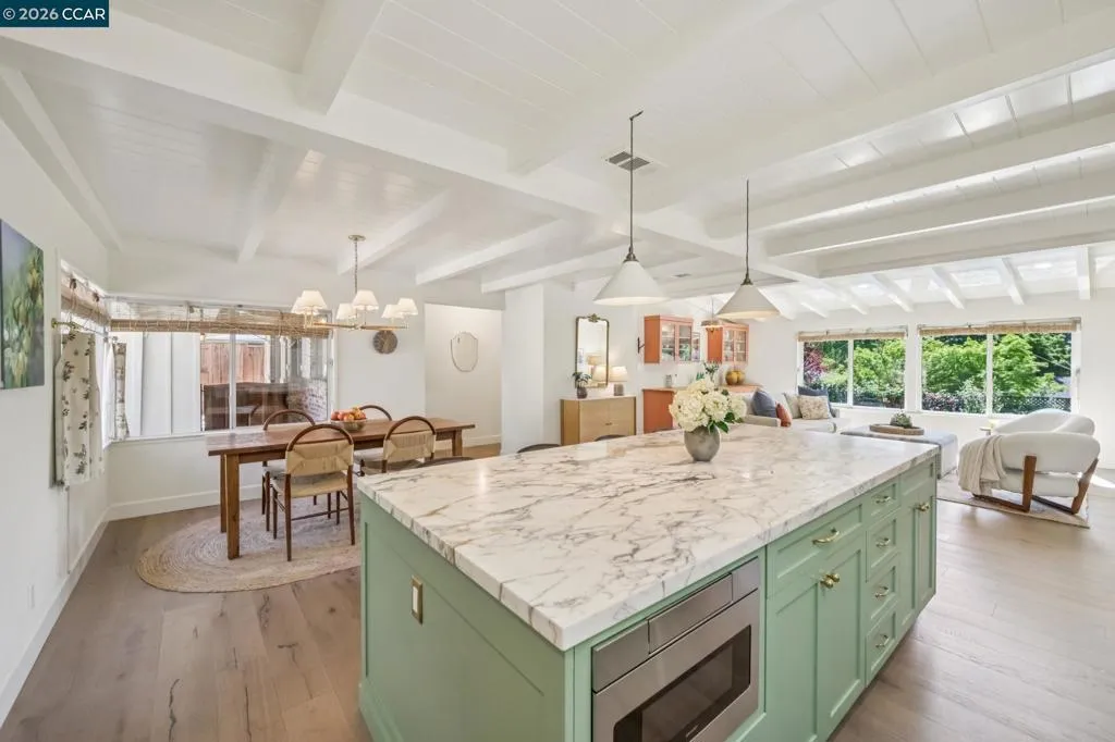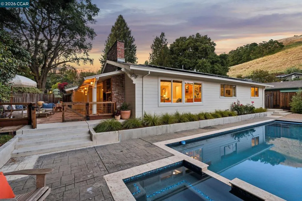 Artfully designed single-story blending timeless design with modern comfort. Thoughtfully updated throughout, this home showcases impeccable craftsmanship and high-quality custom finishes at every turn. Light-filled interiors create a bright, inviting atmosphere with a rare combination of style, comfort and location! At the heart of the home, a dreamy kitchen family great room with Italian Carrera Gold Marble, high-end stainless appliances, and expansive windows that frame serene outdoor views. Beautiful hardwood floors, custom built-ins, solid-core doors, thoughtfully appointed hardware and light fixtures, along with many more custom elements throughout make this show stopper a must see! Step outside to your own private oasis featuring a sparkling pool, lush lawn, impeccable landscape and picturesque surroundings—ideal for quiet mornings or lively weekends. Tucked away on a peaceful cul-de-sac, this exceptional property offers extra guest parking, both privacy and convenience, just moments from downtown, shops, dining, Hwy. 24/680, BART, and top Lafayette schools.
