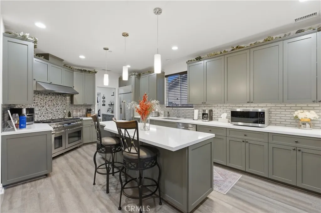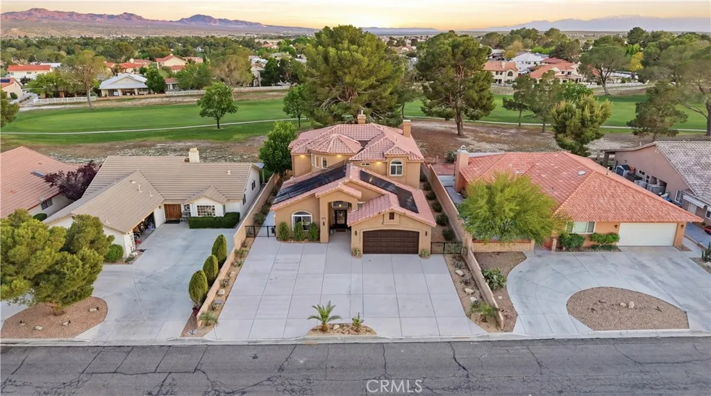 Luxurious Living in Silver Lakes: Experience a resort-style lifestyle in this stunning custom-built home, perfectly situated in the serene community of Silver Lakes in Helendale, CA. Spanning a spacious floor plan with four bedrooms and three full bathrooms, this residence blends modern sophistication with eco-friendly innovation. Interior Features: Step inside to find brand-new Luxury Vinyl Plank (LVP) flooring throughout. The kitchen is equipped for culinary excellence, featuring elegant quartz countertops, a large center island, and high-end stainless steel appliances, including a Dacor double-oven gas range and a premium built-in Dacor refrigerator. Abundant storage and counter space make this a standout feature of the home. Primary Suite & Versatility The expansive primary suite serves as a true sanctuary, complete with a private en-suite bathroom and a generous walk-in closet. The entry-level bedroom provides excellent flexibility for guests, a multi-generational setup, or a quiet home office. Sustainable Power & Efficiency. This home is equipped with a robust solar system paired with a Tesla Powerwall 3 battery for a full-home backup. The system is grandfathered into NEM 2.0 net metering for approximately 18 years, providing a significant advantage for managing utility costs. Outdoor Amenities: The backyard is designed for relaxation and gatherings, boasting views of the golf course, low-maintenance artificial turf for year-round greenery, and a natural gas BBQ hookup. Extensive parking is available for vehicles and recreational equipment. Silver Lakes Community Amenities Membership in the Silver Lakes HOA provides access to premier amenities, including:Golf: 27 holes of championship golf with three unique 9-hole tracks. Lakes: Two private lakes for boating, fishing, and kayaking.Clubhouse: Facilities include dining, a fitness center, a swimming pool, and tennis and pickleball courts.Additional Perks: An equestrian center with stables, RV storage, and community programs—all within a peaceful desert setting.