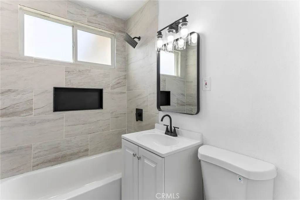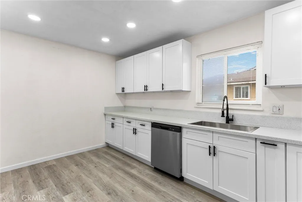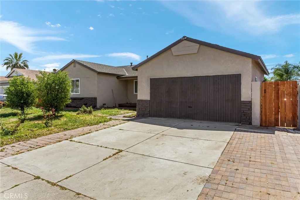 Freshly updated and move-in ready, this expansive 6-bedroom, 3-bath property offers exceptional flexibility with PAID-OFF solar and a separate attached ADU, perfect for multi-generational living. The main residence features 4 bedrooms and 2 bathrooms, while the attached ADU includes 2 additional bedrooms and 1 bath. The home has been completely remodeled and welcomes you with a spacious living room at the front of the home, complete with recessed lighting and a seamless flow into the dining area, conveniently located just off the stunning new kitchen. The kitchen showcases white quartz countertops, crisp white cabinetry, and stainless steel appliances including a gas range, microwave, and dishwasher. Towards the rear of the home, you’ll find a generous family room featuring a cozy fireplace, recessed lighting, and sliding glass doors that open to the backyard—perfect for indoor-outdoor living. The primary bedroom offers vaulted ceilings, a ceiling fan, and private sliding door access to the backyard, creating a relaxing retreat. A beautifully updated full bathroom is located just down the hall and features a tiled shower/tub combination. Three additional bedrooms, all equipped with ceiling fans, share a fully remodeled bathroom with a tiled shower/tub combination. This home has been thoughtfully renovated throughout with fresh neutral interior and exterior paint, new recessed lighting, brand-new bathrooms, a completely updated kitchen, new laminate wood flooring, and new tile flooring in the bathrooms. The attached ADU is ideally situated just off the kitchen, offering convenient yet private access from the main home while also featuring its own separate entrance for added independence. This well-designed space includes 2 bedrooms, 1 bathroom, and a functional kitchenette area with shared laundry hookups, making it perfect for extended family, guests, or multi-generational living. Its layout provides a comfortable balance of connection and privacy, allowing for flexible use without compromising the flow of the main residence. The spacious backyard offers a covered patio, block wall fencing for added privacy, and a large storage shed—ideal for relaxing, entertaining, or everyday use. Conveniently located near shopping, schools, and easy freeway access, this move-in-ready property combines modern upgrades, energy efficiency, and versatile living space—an exceptional find you won’t want to miss.