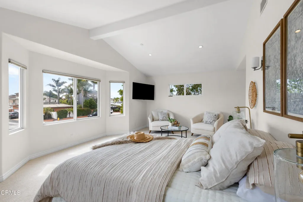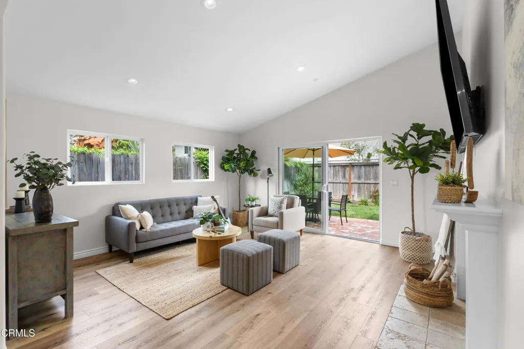 Welcome to this beautifully upgraded two-story beach home in the highly desirable Pierpont neighborhood of Ventura. Built in 2003 and thoughtfully enhanced throughout, this exceptional residence offers 4 bedrooms, 3 full bathrooms, and approximately 2,275 square feet of living space delivering the perfect blend of coastal charm, comfort, and modern sophistication.Step inside through the newly installed front entry Dutch door perfect for capturing the refreshing ocean breeze and experience a light-filled, open-concept layout designed for both everyday living and effortless entertaining. The gourmet kitchen features granite countertops, stainless steel appliances, and seamless flow into the dining area and spacious living room. Soaring ceilings, a cozy fireplace, and a combination of laminate and elegant travertine flooring create a warm yet refined atmosphere throughout the main level. A convenient downstairs bedroom with adjacent full bath is ideal for guests or multi-generational living.This home has been upgraded with attention to both style and functionality. Enhancements include new recessed lighting and ceiling fans, fresh interior and exterior paint (including the garage), and upgraded window coverings in the bedrooms. Plush new carpet and padding add comfort to the upper level, creating a true retreat experience.Upstairs, the expansive primary suite offers high ceilings, a generous walk-in closet, and a spa-inspired en-suite bath complete with marble countertops and a soaking tub--perfect for unwinding after a day at the beach.The exterior has been meticulously improved to elevate curb appeal and outdoor living. Custom entry and side gates with frosted glass and keyless access provide both privacy and convenience. The professionally upgraded landscaping features new sod, lush plants, vines, and a fully automated drip and sprinkler system controlled by app. Custom exterior lighting, including Malibu landscape lighting, enhances the ambiance and showcases the property beautifully in the evening. The backyard is designed for relaxation and entertaining, complete with ample dining space and a tranquil waterfall feature.Ideally located within walking distance to Pierpont Elementary School, Marina Park, local shops, restaurants, and the scenic coastal promenade, this home offers the ultimate beach lifestyle--where ocean breezes, morning walks, and sunset views are part of your everyday routine.