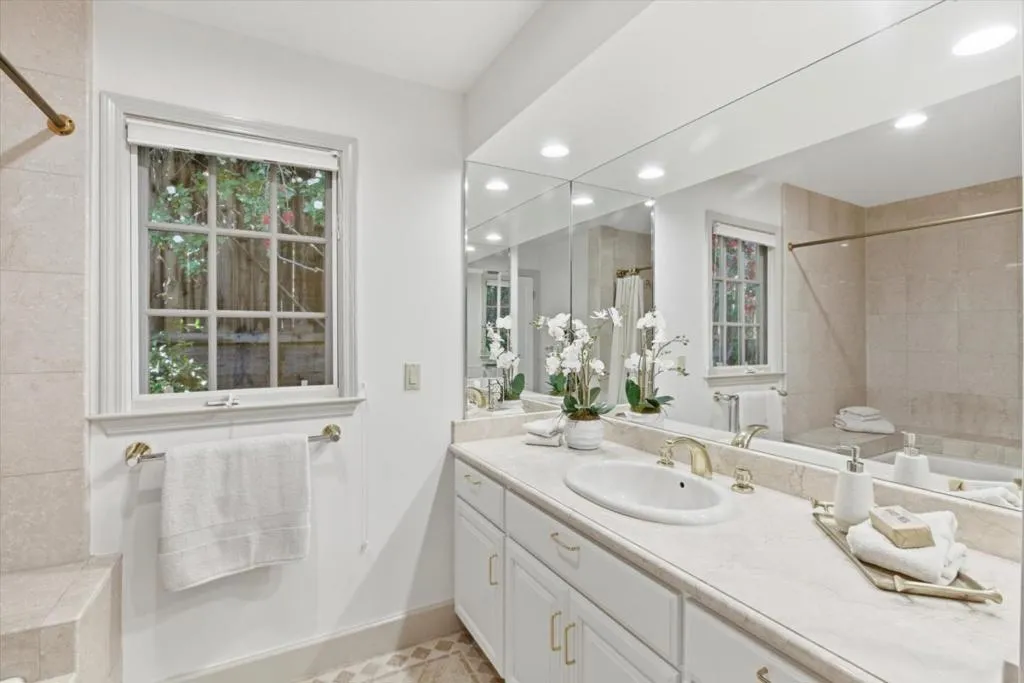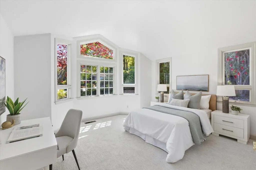 Welcome to this elegant light-filled single-story home offering 3 bedrooms and 3.5 bathrooms across approximately 2,581 sq ft of living space. Thoughtfully designed with both a separate living room and family room, providing flexible spaces for everyday living and entertaining. The home is filled with beautiful natural light and features high ceilings that enhance the sense of openness throughout. Enjoy both a formal dining room and an eat-in kitchen, ideal for gatherings of any size. The kitchen features a large center island allowing for 2 bar stools, a very convenient desk area, and stainless steel appliances. The spacious and lovely primary suite is highlighted by a walk-in closet and direct access to the gorgeous rear yard. Situated on an expansive approximately 11,385 sq ft lot, the backyard showcases mature landscaping along with a pool and jacuzzi, creating a private outdoor retreat. Other amenities include 2 fireplaces, central A/C, dedicated laundry room, and an attached 2-car garage. Ideally located near Montclaire Elementary and within the highly regarded Cupertino school district, this home combines comfort, space, and an exceptional location.