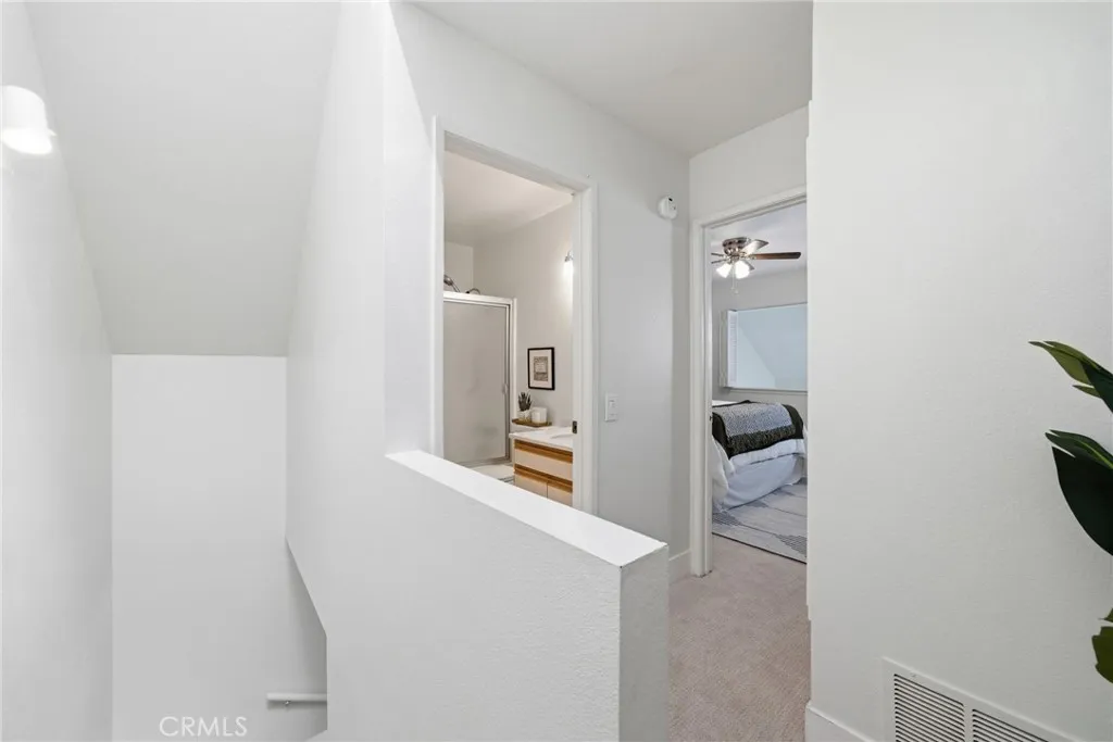 Welcome to 3 Greenmoor, a charming townhome located in the highly desirable Woodbridge community of Irvine. From the moment you enter, you’re greeted by soaring two-story ceilings and an abundance of natural light that fills the living space, creating an open and inviting atmosphere. The living room features a cozy fireplace and is complemented by shutters on the windows and sliding doors, adding both style and privacy. The main level offers brand new luxury vinyl plank flooring and includes a spacious bedroom with an attached bathroom, complete with a tub and shower combination. This room also features a ceiling fan and generous space, making it a comfortable retreat. The kitchen opens to the living area and includes a breakfast bar, along with a dishwasher, range, and refrigerator. Just off the kitchen is a separate walk-in laundry room for added convenience. There is also space for a dining area, making the layout both functional and flexible. Upstairs, you’ll find brand new carpet and a second large bedroom with its own bathroom, also featuring a tub and shower combination, offering privacy and comfort. Step outside to a private enclosed patio, ideal for outdoor dining, relaxing, or enjoying the Southern California weather. The home also includes a one-car detached garage. Located within the Woodbridge community, residents enjoy access to a wide range of amenities, including lakes, pools, parks, and more. This home is also situated within the attendance boundaries of Springbrook Elementary, South Lake Middle School, and Woodbridge High School. A wonderful opportunity to own in one of Irvine’s most sought-after neighborhoods.