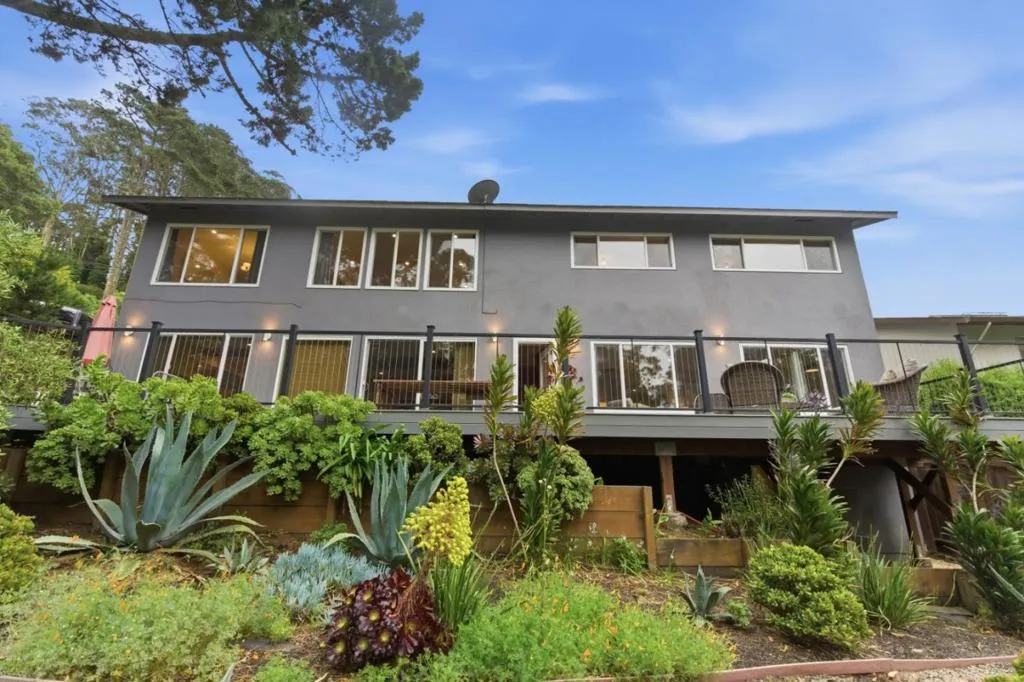 Situated in the exclusive Linda Mar neighborhood, this rare gem offers an exceptional blend of privacy, expansive lot size, and serene ocean views. This meticulously designed home features a main level w/4 spacious br, 2 ba, kitchen, living room & dining area. The gourmet kitchen is a chefs dream, anchored by a $7k 3 yr old Thermador range, $15k 3 yr old Sub-Zero refrigerator, an apron sink, & granite countertops. In the open living & dining areas, a wall of windows invites brilliant natural light & showcases a tree-lined vista w/filtered views of the Pacific. The residence is uniquely versatile, featuring 2 distinct family rooms. For those requiring extra space, one of these rooms can easily serve as a 6th bedroom at the lower level. The middle level also houses a vast & luxurious primary suite, complete w/walk-in closet, & a 200-square-foot spa-like bathroom featuring a steam shower, soaking tub, & bamboo waterfall faucets. Outdoor living is equally impressive, centered around a massive 4 yr old $100k 1,400-square-foot deck & a indoor hot tub cottage located just steps away from the primary suite. The fully landscaped, terraced grounds include a built-in firepit. This is an exquisite opportunity to own a home that perfectly balances luxury with functional, flexible living.