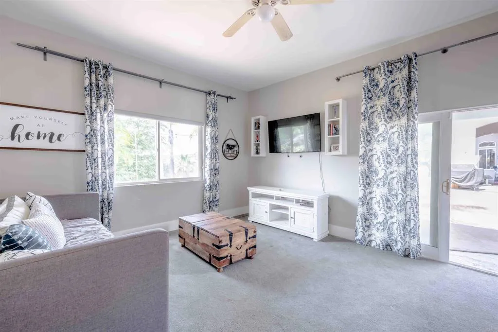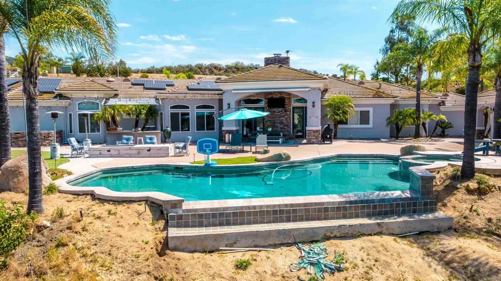 Beautiful fully furnished Jamul home offering privacy, space, and scenic surroundings. Located in the gated community of Rancho Jamul Estates, this well-maintained single-level custom home features 4 bedrooms, an office, and 4.5 bathrooms with a spacious open layout, high ceilings, and comfortable living areas. The large kitchen opens to the main living and dining areas, making it ideal for everyday living and entertaining. Situated on approximately 2.5 acres, the property offers incredible panoramic views, plenty of parking, RV parking, and outdoor space. The backyard is designed for relaxation and entertaining, featuring a vanishing edge pool and spa, fire pit, outdoor BBQ area, and patio space to enjoy the peaceful surroundings. The primary suite features a double-sided fireplace, large soaking tub, steam sauna, and his-and-hers walk-in closets. Each additional bedroom includes its own bathroom and walk-in closet. The home also features a spacious 4-car garage. Additional features include a detached guest house, workshop area, batting cage, half-court basketball area, large storage area, and two electric vehicle charging stations. Enjoy peaceful country living while still being just a short drive to Rancho San Diego, shopping, dining, and other local amenities. Appliances included: refrigerator, washer, and dryer. No smoking. Pets considered with additional deposit. For showings and application information, please contact owner directly at 619-666-9854.