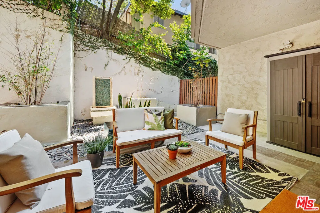Bel Air Condominium off Moraga & Bellagio!! This unique unit features a front courtyard along with a rear yard totaling +-330 square feet of additional outdoor living space! Step in from your private courtyard to a beautifully redone 1,651 square feet of living space that lives more like a home than a condominium with the Private Front Patio and Rear Yard. The front floor-to-ceiling windows and glass door lead to a beautifully appointed interior with bamboo floors greeting you. Residence highlights include a large living room with fireplace separating two large living spaces, a remodeled open concept kitchen, large dining room, breakfast bar, eat in kitchen, and loads of storage closets, pantry space, in unit washer/dryer, powder room, central heat & air, and two side x side parking spaces with EV 240 Volt charging hookup. The building features a freshly redone rooftop tennis court, heated pool, his and hers saunas, bathrooms, and community room for entertaining, guest parking, and lush mature trees and garden grounds. The redone kitchen features butcher block counter tops, all stainless appliances including double ovens. Walk down the hallway lined with abundant closets and built-in storage to two bedrooms with their own en-suite baths. The primary features a large walk-in closet, double vanities, and a separate spa tub and shower. The second oversized bedroom features its own bath with shower and loads of closet space. This 16 unit building is in the perfect setting and location, close to everything city, yet feels like a world away when inside. Located in the prestigious Roscomare Road school district with Harvard-Westlake and Buckley nearby. A must-see best deal on the westside. Ideally positioned off the 405 frwy close to Brentwood, Beverly Hills, Westwood, UCLA, and Valley Neighborhoods, This residence blends seclusion, livability, and convenience in a highly sought-after Bel Air.