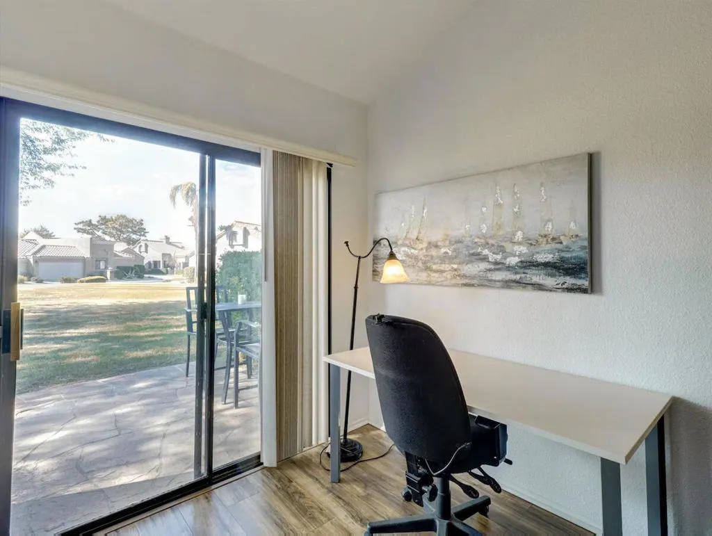 OFFERED TURNKEY FURNISHED ** This popular Augusta Plan is light/bright & situated on a emerald green greenbelt with two spacious bedrooms, two full baths and approx. 1091 sq. ft. The master bedrooms has soaring ceilings and sliders to the back patio! Tiled throughout with ceiling fans as well. Large living room with fire & ice fireplace & a one car garage with storage space. If you are a golfer, you will love that you never have to leave the community to golf. No membership needed. You can pay as you play or purchase a membership. Palm Desert Resort Country Club is close to shopping, restaurants, markets and festivals. There is a $40 per month food and beverage fee. Call or stop by Clubhouse for details. The neighborhood features 20 pools & spas, a 24/7 guard gated entry, an 18-hole par 72 golf course with a pro shop, restaurant, tennis and pickle ball facilities and is vacation rental friendly with a 3 day / 2 night minimum. Make money even when you're not there! A charming condo just waiting for you! Beautifully furnished.