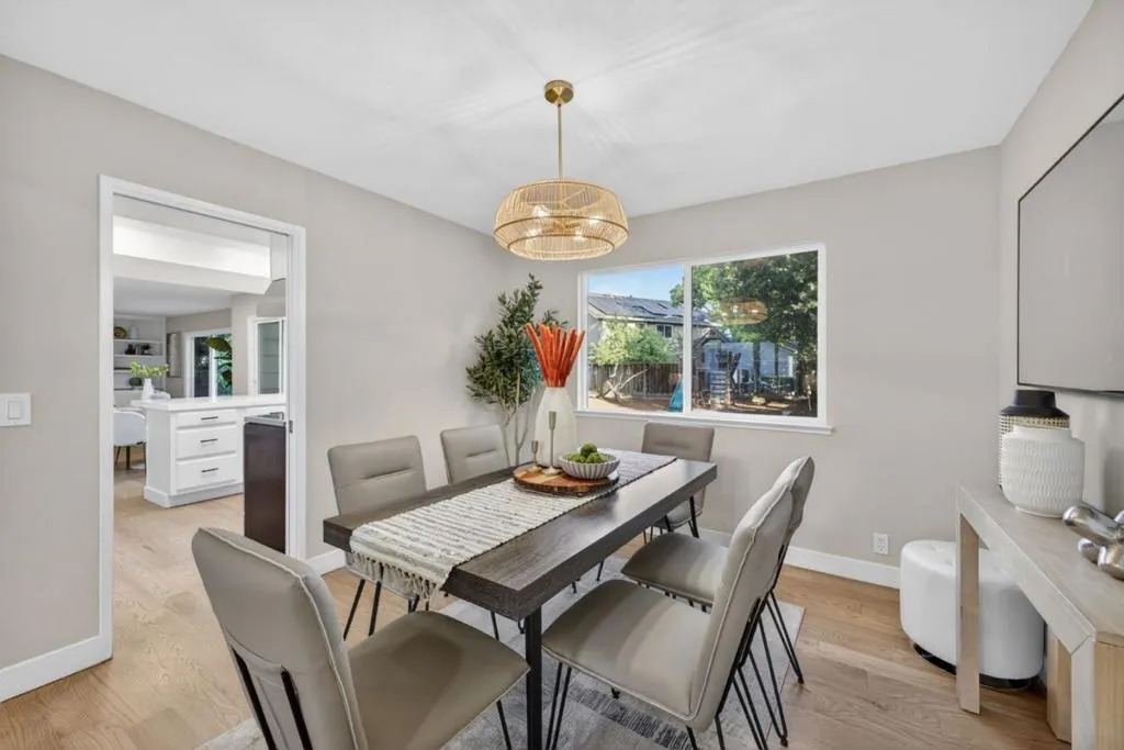Tucked away on a quiet interior street in Almaden Valley, 6570 McAbee Road offers a rare blend of privacy, space, and scenic beauty. Nestled against the hills, enjoy peaceful surroundings with stunning mountain views and hiking trails just down the street, perfect for an active lifestyle. Set on an oversized 7,316 sq ft lot, this home provides exceptional indoor and outdoor living. Inside, youll find gorgeous updates including new red oak hardwood flooring throughout, new windows throughout, and a beautifully refreshed kitchen with quartz countertops and new stainless steel appliances. The thoughtful floor plan features a separate living room, family room, and formal dining room, offering flexibility for both everyday living and entertaining. Upstairs, the spacious primary suite is a true retreat with picturesque hill views and a remodeled en-suite bathroom. Four additional generously sized bedrooms and an updated hall bathroom provide ample space for family, guests, or a home office setup. Located near Almaden Country Club and zoned to top-rated Simonds Elementary, this home also offers convenient access to major tech campuses. A rare opportunity to enjoy space, views, and an ideal Almaden location.