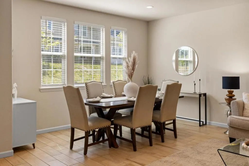 Stunning townhouse in the sought-after East Garrison community! This beautifully updated 3-bedroom, 3-bathroom home features fresh paint and new flooring throughout, giving it a crisp, modern feel from the moment you walk in. The open-concept main level is perfect for entertaining, featuring a bright living room that flows seamlessly into a stunning kitchen boasting white cabinetry, granite countertops, stainless steel appliances, and globe pendant lights over a breakfast bar. A separate dining area with large windows fills the space with natural light. Upstairs, the spacious primary suite offers a peaceful retreat, while a versatile loft area with built-in cabinetry provides the perfect home office or bonus space. Two additional bedrooms and a two-car garage complete this exceptional home. Enjoy the charm of a Mediterranean-style exterior, scenic walking paths, and lush community landscaping. All just steps from your front door.