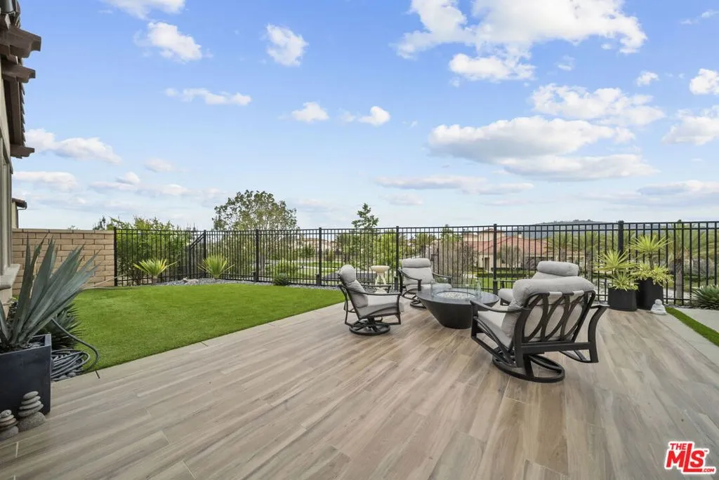 Welcome home to The Grove, a stunning 55+ resort inspired community quietly nestled between the Pacific Ocean and the Santa Susana Mountains. Enjoy convenient access to shopping, dining, harbors, beaches, and everyday essentials, all while being surrounded by scenic trails that wind through this elegant neighborhood and offer breathtaking panoramic views. With its welcoming atmosphere and exceptional setting, The Grove truly delivers a sense of community paired with effortless Southern California living.Residents enjoy an impressive collection of resort style amenities, including a spectacular outdoor pool and spa, cabanas, an outdoor kitchen with fireplace, and a luxurious clubhouse. The clubhouse features a full fitness center, gathering room, library, lounge area, and an array of outdoor leisure options such as a putting green, pickleball courts, bocce ball, and a dog park.This home is one of the desirable Flora single family residences, offering a private yard and no common walls. Purchased early to secure this premier lot, the home features a spacious, low maintenance west facing backyard with unobstructed views and spectacular sunset vistas.The thoughtfully designed open floor plan includes two bedroom suites, an office/den, powder room, and a generous great room that flows seamlessly into the kitchen and dining area. Indoor outdoor living is highlighted by a covered outdoor living space complete with a built in fireplace, creating an ideal setting for relaxation and entertaining.Owner upgrades include custom cabinetry, Vadara quartz countertops in the kitchen, a large soaking tub, tongue and groove wood ceiling in the outdoor living space, matching ceramic outdoor flooring, and more.This residence presents a rare opportunity to own a beautifully upgraded home in one of the area's most sought after 55+ communities.