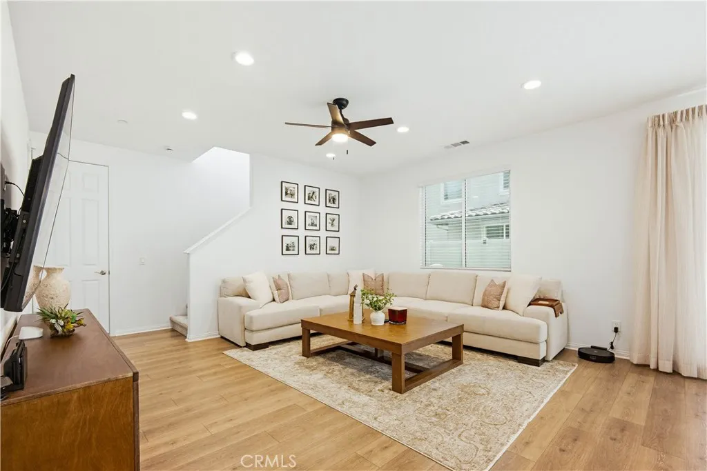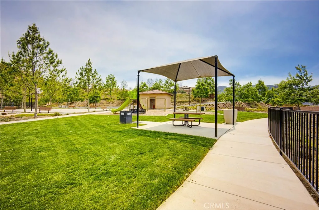 Ideally located in the peaceful and family friendly gated community of Terramor, nestled up to the Estelle Mountain Reserve, this like-new Skyview at Terramor beauty built in 2024, is model perfect and move in ready! Step inside and soak in the light and bright interior spaces with a neutral Pebble Beach palette, sleek Beachwalk Collective Outerbanks wood laminate floors, and curated interior features throughout the open concept floor plan creating a superb living environment. The sparkling kitchen boasts white Thermofoil Vinyl soft close cabinetry, Miami Vena Quartz countertops, Ice Glass subway tile backsplash, Brushed Nickel hardware and pulls, Stainless-Steel Appliances, Antoni Spotless Stainless Faucet, undermount Stainless-Steel sink, coffee bar, large kitchen island, pendant lighting, and breakfast bar, all open to the dining and the living room with direct access through the sliding doors to the backyard patio, providing an ideal indoor-outdoor living space. Travel up the light filled stairway to the second level featuring a bonus open loft space perfect for a media room, library, den/rec room, or teen hangout. The primary bedroom suite is a private retreat with recessed lighting, a walk-in closet, and a spacious primary bathroom with Piedrafina Cultured Marble topped dual vanity, Saylor Stainless Steel Faucets, Logan Square Petite undermount sinks, Maxwell Comfort Height Toilet, and large walk-in shower. Spacious secondary bedrooms with custom light fixtures, a full guest bath with like finishes, and a convenient bedroom level laundry room with full-size washer and dryer hookups complete the upper level. The spacious backyard is a fully enclosed oasis with covered patio, raised hardscape and seating areas, easy care and water conscious artificial turf, and vinyl fencing. Perfect for entertaining and relaxing with friends and family. Home includes cost saving SunPower Solar System, and a convenient direct access 2 car garage. Resort like community amenities include guard gated entrance, The Terrace Club which includes Clubhouse, Gym & Wellness Studio, Bocce Ball, Tennis & Pickleball Courts, Multipurpose rooms, outdoor cooking area, outdoor Pool and Hot Tub, Indoor Pool, Crafts Room, Outdoor Fireplace, Pavilion with Bar, Locker Rooms, Saunas, and more! Located close to nearby Terramor Commons with playground and dog park, and numerous hiking and biking trails. Close to shopping, dining, golfing, Glen Ivy Hot Springs, and easy 15 Freeway access.