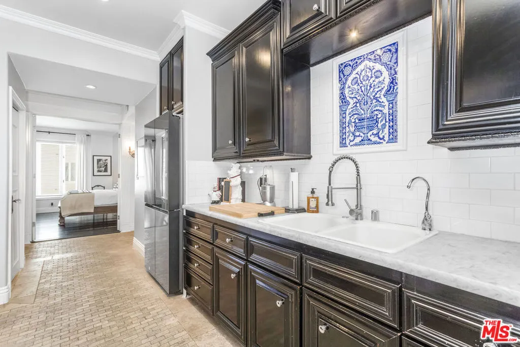 Available for both short and long term. Discover an exquisitely updated and meticulously maintained corner unit designed by Oscar winning actor and renowned real estate developer, Jeremy Renner, at the historic Granville Towers, offering sweeping panoramic city and hillside views. Experience old-school glamour and luxury in a residence that rivals a five-star hotel. Constructed in 1930 by renowned architect Leland Bryant, famed for the Sunset Tower Hotel, Granville Towers has long attracted Hollywood's elite much like the nearby Chateau Marmont. This charming residence features 3 bedrooms and 3 bathrooms, beautifully appointed with Ann Sachs tile and rich, dark hardwood floors, with high ceilings and an ideal floorplan. The living room benefits from double window exposure, flooding the space with natural light, while the formal dining room provides an elegant setting for entertaining. The chef's kitchen is equipped with custom cabinets and top-of-the-line stainless steel appliances. The primary suite boasts a stunning spa-like bathroom with a vintage clawfoot tub and a separate walk-in shower, featuring custom Waterworks fixtures. The residence comes fully furnished with a curated collection of luxurious designer pieces, reflecting the style and sophistication of classic Hollywood glamour. The building offers beautiful gardens, outdoor patios, and a doorman. Its prime location provides close proximity to world-class shopping and entertainment in West Hollywood and the legendary Sunset Strip.