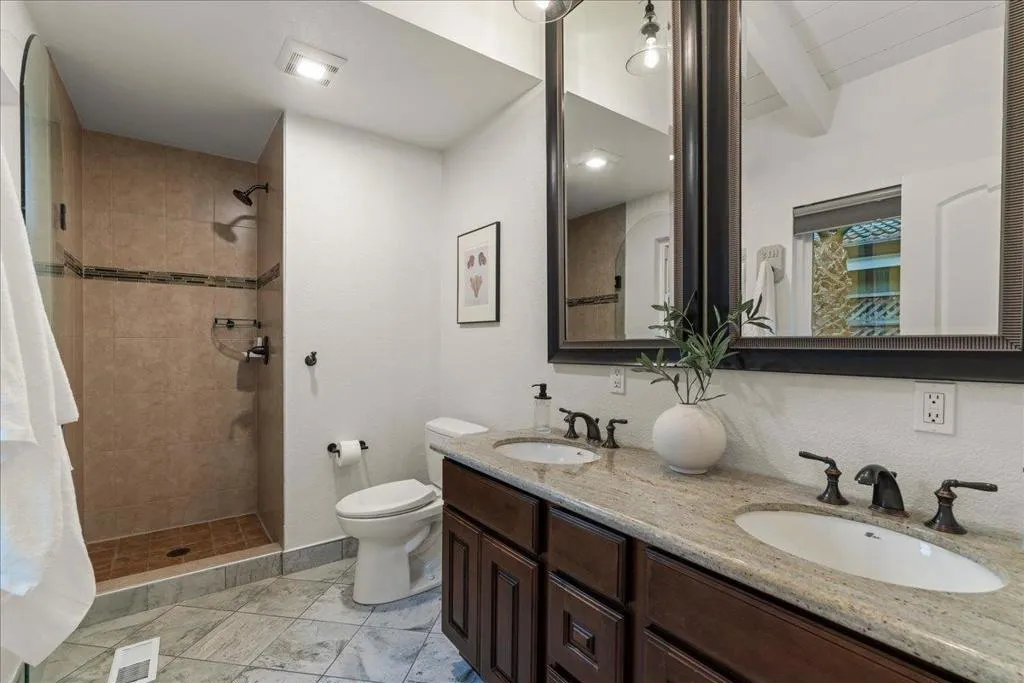 Ideally located just moments from the charm of Downtown Willow Glens Lincoln Ave shops, dining and parks, fully setback from the street, this Magnolia farmhouse-inspired home offers exceptional walkability while providing a sense of calm and retreat. The sought-after open-concept floor plan showcases a custom open-beam vaulted ceiling that anchors the spacious main living area, complemented by designer lighting, granite countertops, gas fireplace and hand-scraped Acacia walnut hardwood flooring. Over $200K in thoughtfully executed improvements provides turnkey living. 2026: new interior paint, landscape refresh, new light fixtures in primary and dining area. 2023: fully reimagined 537 sq ft garage 2019: comprehensive renovation including kitchen, fireplace, guest bath, laundry, flooring, exterior paint, new gutters, along with additional upgrades in 2014. Beyond design, the investment is substantial and intentional: new HVAC and ducting, water softener/ RO filter, upgraded electrical, smart home features, remodeled kitchen and baths and large bedrooms featuring closet organizers and window treatments. Outdoors, professionally curated grounds include over $50K in landscaping, flagstone hardscape, irrigation and full redwood fencing, creating a lush, functional, and peaceful yard.