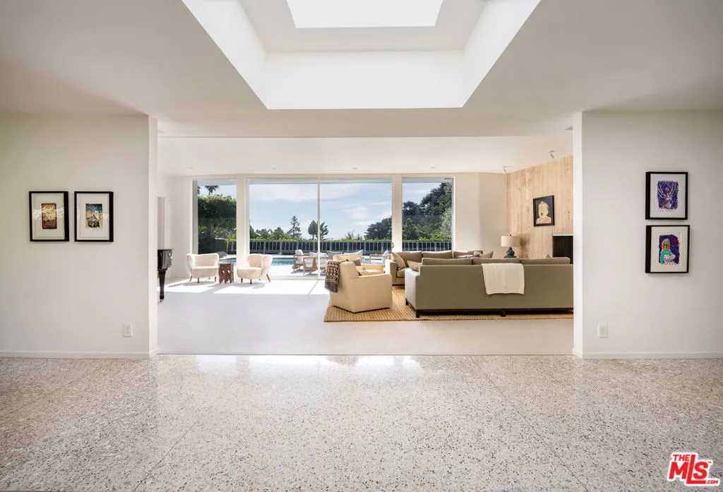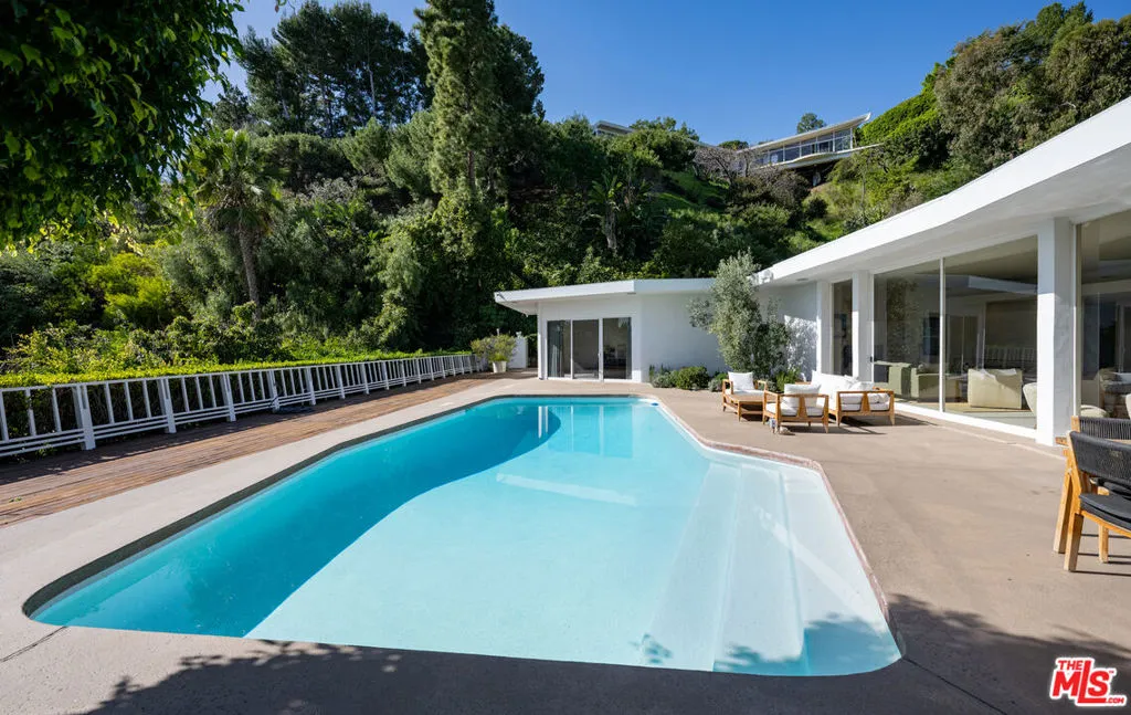 Set within the prestigious enclave of Trousdale Estates this beautifully remodeled mid-century architectural home offers panoramic city views with a glimpse of the Pacific Ocean with an effortless indoor-outdoor lifestyle synonymous with the best of Beverly Hills living. Stepping into a light-filled living room anchored by a fireplace and dramatic glass walls stretching across the home, framing the sparkling pool and breathtaking skyline. This single-level residence features six bedrooms and five bathrooms, all thoughtfully updated in a 2025 renovation; including new fixtures, elegant tilework, and kitchen adding modern appliances while preserving the timeless character of its mid-century design. Designed for both relaxed living and refined entertaining, the home flows seamlessly to the outdoor grounds with landscaped gardens, a tranquil koi pond, and a swimmer's pool with an expansive view terrace. With a spacious motor court accommodating multiple vehicles, complemented by a three-car garage this exceptional property offers a rare and exceptional opportunity in one of Beverly Hills' most coveted neighborhoods. Inquire for availability starting in July and for furnished lease terms.