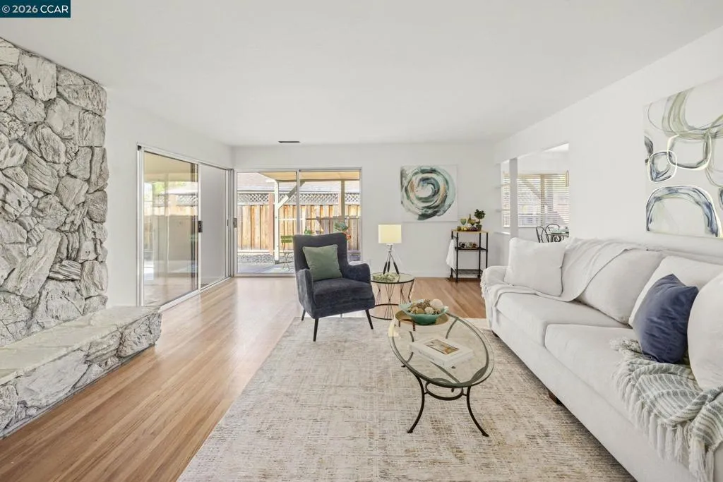 Wow! Sunny, light /bright ,Gleaming hardwood refinished flooring, freshly painted interior, Ready for you !3 bdrm 2 full baths PLUS sunroom off living room w/ saltillo tile& slider to exterior. Large formal livingrm with slider to exterior too. Large cozy fireplace w/raised hearth. Large light n bright primary w/ bath, (new surround&flooring) Low maintenance yard, private backyard w/ shed& fully fenced yard, and well on site.Extra wide aggregate driveway. Heart of Vibrant Pleasant HIll, Walk to shopping, Restaurants,Melos Pizza,Movie theater, Park&Farmers market! AND $9800. credit to buyer, from seller at COE exterior painting?buydown?closing costs? or? Brokers open 4/14 11-1pm AND open house this 18th SAT 2-4 pm and 19th Sunday 1-4 pm