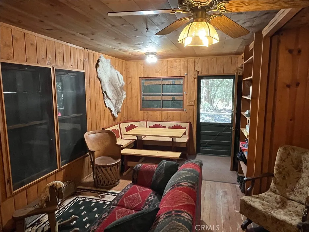 Escape to your very own well-maintained cabin nestled in the serene forests of Southern California. This charming retreat features two bedrooms and a cozy bathroom. (All downstairs) One of the downstairs bedrooms is equipped with bunk beds, perfect for family gatherings or hosting friends. Head upstairs to discover a huge finished room that spans the length of the cabin, offering versatile space for additional sleeping, play, or relaxation. The living room is inviting and features a comfortable layout, complete with a cozy breakfast/dining nook in the corner, creating a warm atmosphere for meals with loved ones. The spartan kitchen includes a sink, refrigerator, and microwave, providing the essentials to whip up meals after a day of adventure. Imagine transforming it into the kitchen of your dreams! Everyone has been excited about the screened room outside the kitchen. Experience outdoor living at its finest with river access just across the county road, where you can actually catch trout for supper. Plenty of activities await, including hiking, fishing, mountain biking, off- roading, and simply unwinding in the beauty of nature. (Cabin is nestled amongst old growth California live oak trees). Conveniently located between Redlands and Big Bear, you’ll have easy access to nightlife and amenities whenever you wish to venture out after a week of mountain serenity. Certain restrictions will apply. Agents can find the Forest Service Use Permit in the Supplements section. Buyers can get one by asking. These cabins cannot be financed. Therefore, they are CASH purchases only. Start thinking about your own cabin in the woods today!