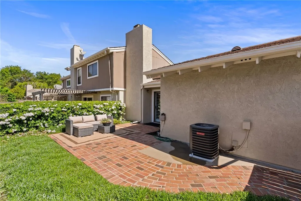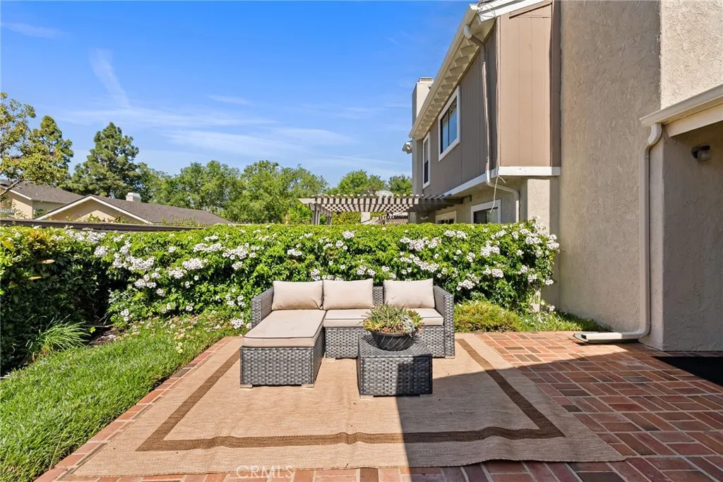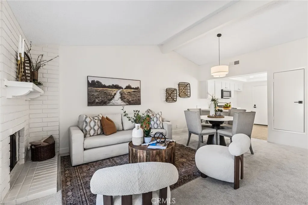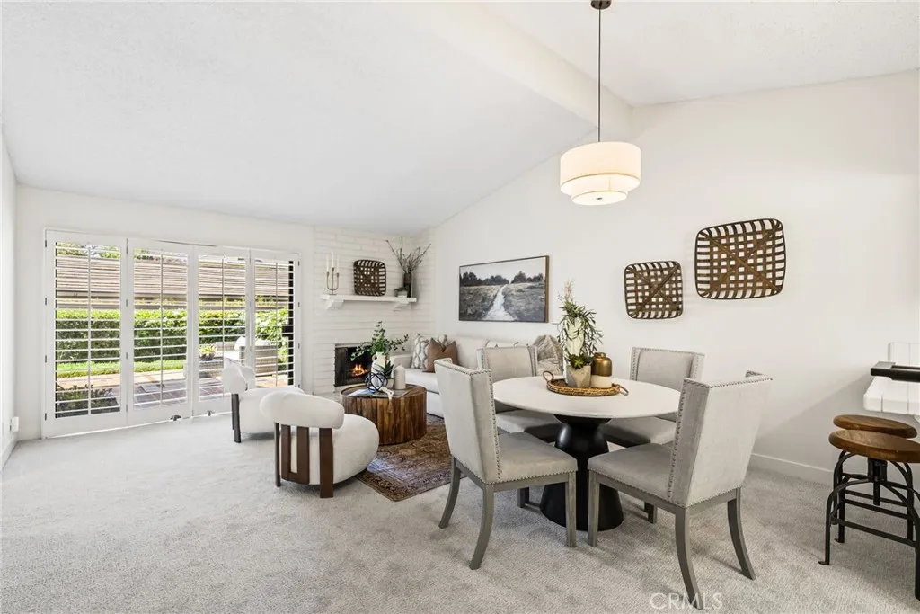 Welcome to this light, bright, and cheerful single level end-unit townhouse in the highly sought-after Woodbridge community of Irvine! Located at 36 Sunfish, this move-in-ready 2-bedroom, 1.5 bath home offers 863 square feet of thoughtfully designed living space that lives larger than expected—perfect for first-time buyers, downsizers, or anyone looking to enjoy this incredible neighborhood. From the moment you step inside, you’re greeted by soaring vaulted ceilings and a cozy fireplace that create an open, airy vibe ideal for both relaxing and entertaining. Fresh interior paint, new carpet and baseboards, LED recessed lighting, and sleek stainless steel kitchen appliances give the home a crisp, modern feel. The kitchen’s seating bar flows effortlessly into the living and dining areas—perfect for casual meals and gathering with friends. The primary bedroom includes a generous walk-in closet while the second bedroom is currently styled as a home office/den with its own bathroom, offering flexible living options for guests or working from home. Step outside to your low-maintenance patio, a private quaint retreat for morning coffee, weekend lounging, or BBQs in the SoCal sunshine. You’ll also enjoy the convenience of an attached 2-car garage and easy guest parking nearby. Just a short stroll to a nearby park and surrounded by Woodbridge’s scenic greenbelts, lakes, pools, and walking paths, this home offers not just comfort—but a lifestyle to love.