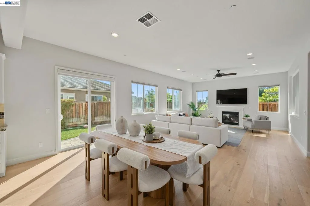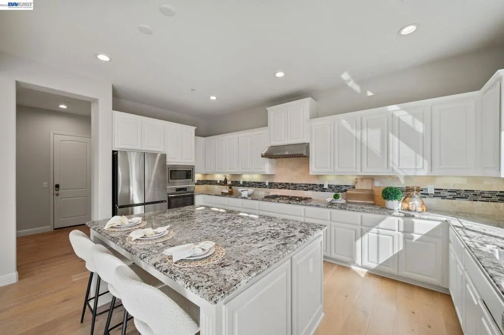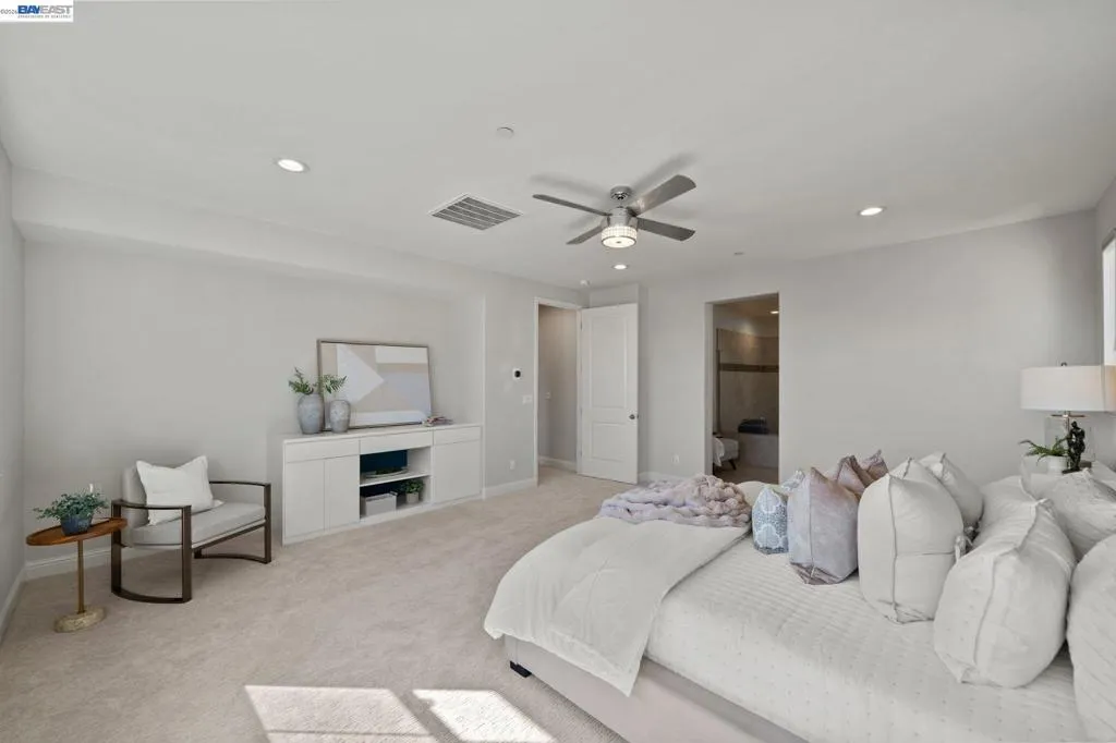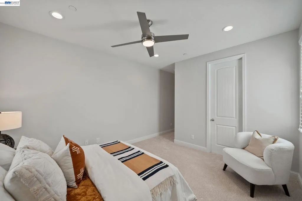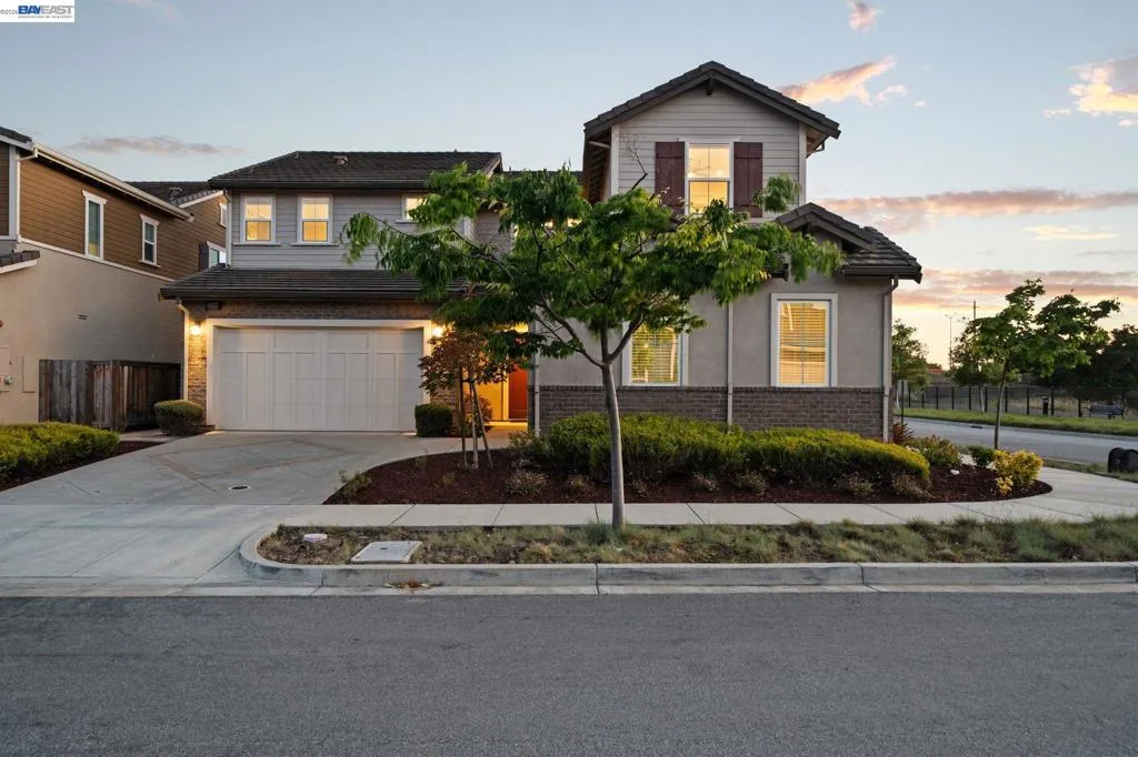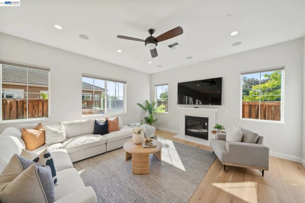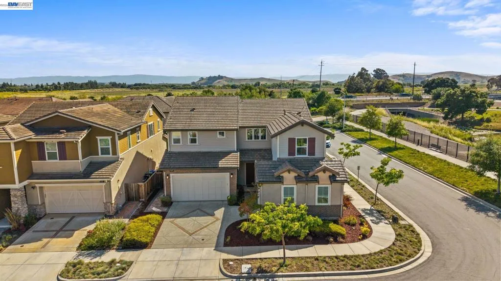 Beautifully designed DR Horton home in Patterson Ranch, built in 2016, offering 4 bedrooms, 4.5 baths, and approximately 3,402 sq ft of thoughtfully planned living space on a desirable corner lot. A generously sized downstairs suite provides excellent flexibility for guests, extended family, or multigenerational living. Fresh interior paint and new carpet create a crisp, move-in-ready feel throughout. The gourmet kitchen is appointed with granite slab countertops, a large center island, stainless steel appliances, and refined cabinetry that elevates the space with timeless style. The former formal dining room has been converted into a private office with a Murphy bed, offering ideal flexibility for working from home or accommodating overnight guests.The spacious main living area includes hardwood floors, surround sound, and a cozy fireplace. Upstairs, an oversized loft provides excellent bonus space for entertaining, along with a separate study area. The generous primary suite offers a soaking tub and separate stall shower. Additional highlights include solar power, 2 Tesla Powerwalls, an EV charger, a 3-car garage, and a beautifully finished backyard with decorative retaining walls and a verdant lawn. Located in Patterson Ranch’s urban farm-inspired community near trails, shopping, Facebook, Coyote Hills, BART, 880, and the Dumbarton Bridge.